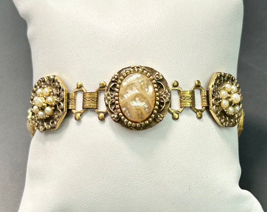 Vintage Faux Pearl Book Chain Bracelet