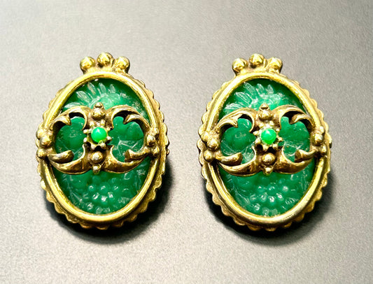 Vintage Carved Nephrite Clip Earrings