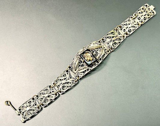 Vintage Onyx Bead Necklace 835 Silver Clasp