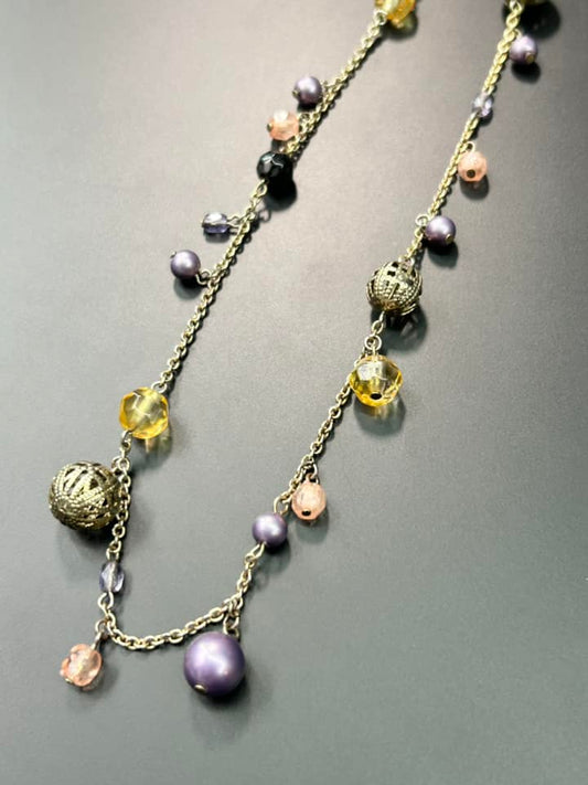 Brass Tone Beaded Necklace