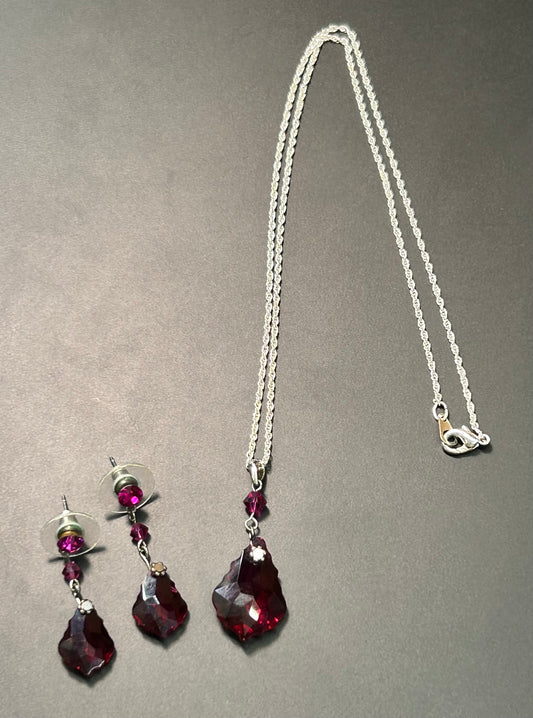 Faceted Glass Necklace & Earrings Set