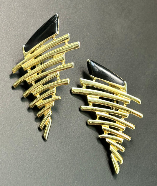 Sold outGold Tone Enamel Clip Earrings