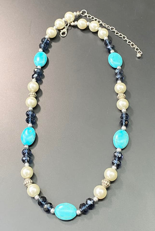 Amazonite & Bead Sterling Silver Toggle Necklace