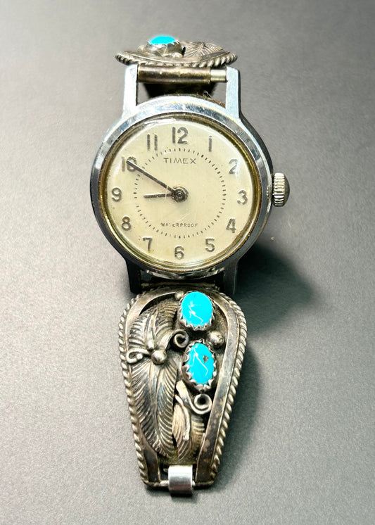 Carved Leaf Turquoise Sterling Silver Heishi Necklace