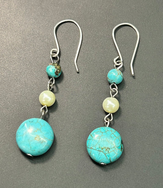 Turquoise Heishi & Shell Sterling Silver Jacla Earrings