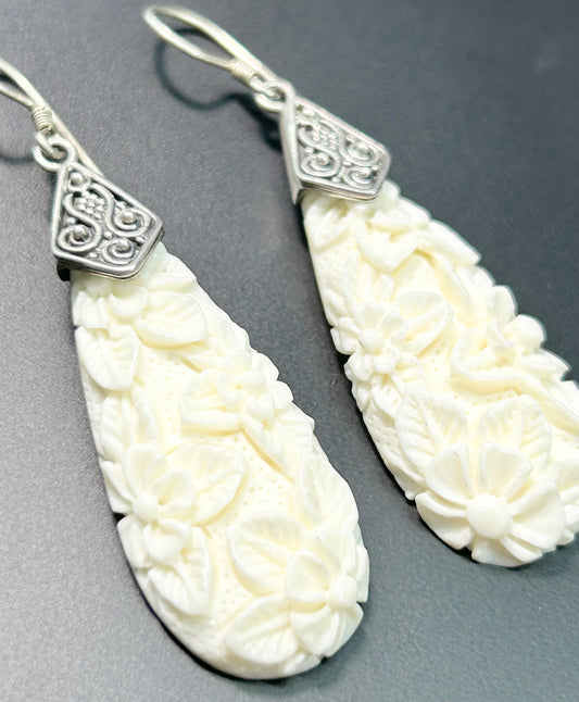 Sterling Silver Carved Bone Earrings