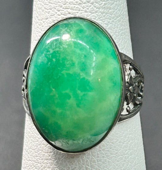 Vintage Sterling Silver Peking Glass Ring Sz 5