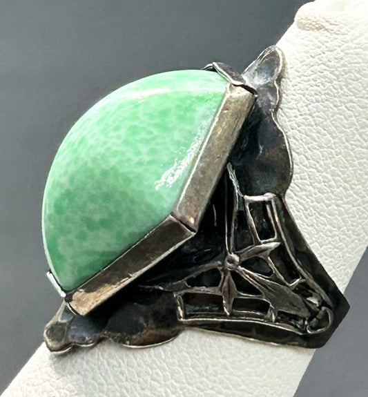 Vintage Sterling Silver Peking Glass Ring Size 4.5