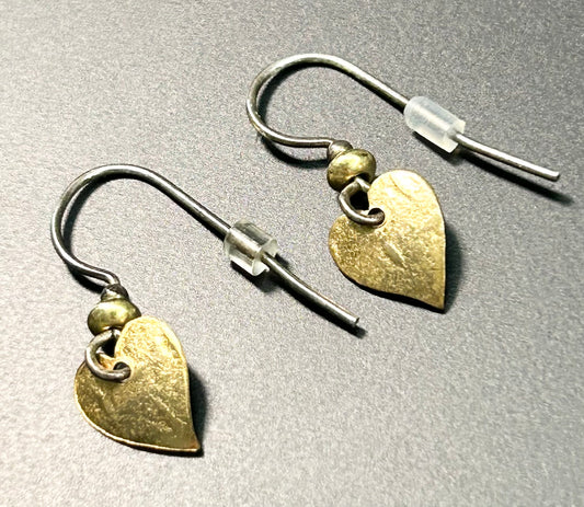 Sterling Silver & Brass Heart Earrings