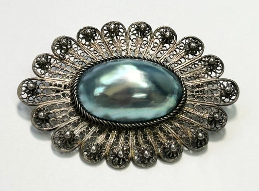 Antique Sterling Silver Baroque Pearl Brooch