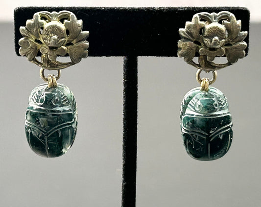 Sterling Silver Scarab Clip Earrings