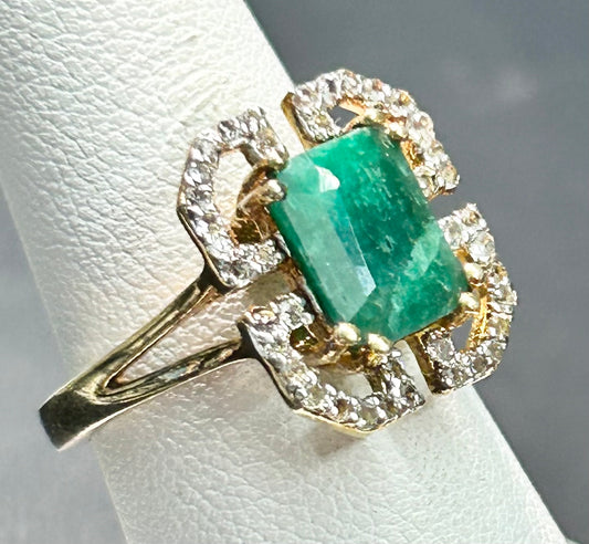 Sterling Silver Vermeil Emerald & Topaz Ring Size 6