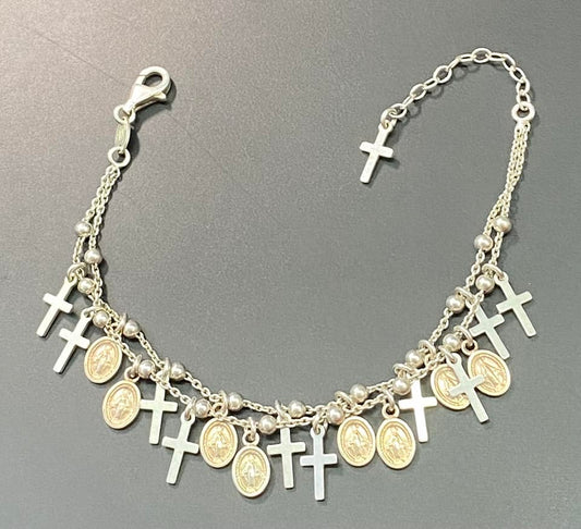 Dyadema Italy Sterling Silver Religious Charm Bracelet