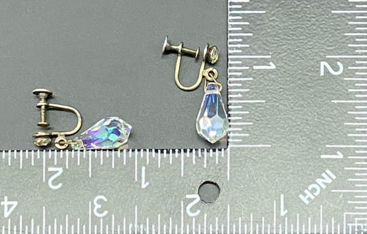 Sterling Silver Vermeil Faceted Glass Screw Back Earrings