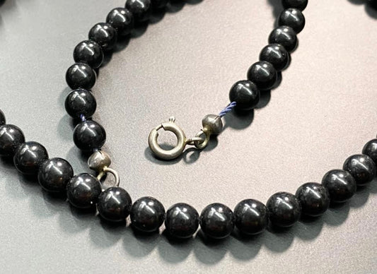 Vintage Onyx Bead Necklace 835 Silver Clasp