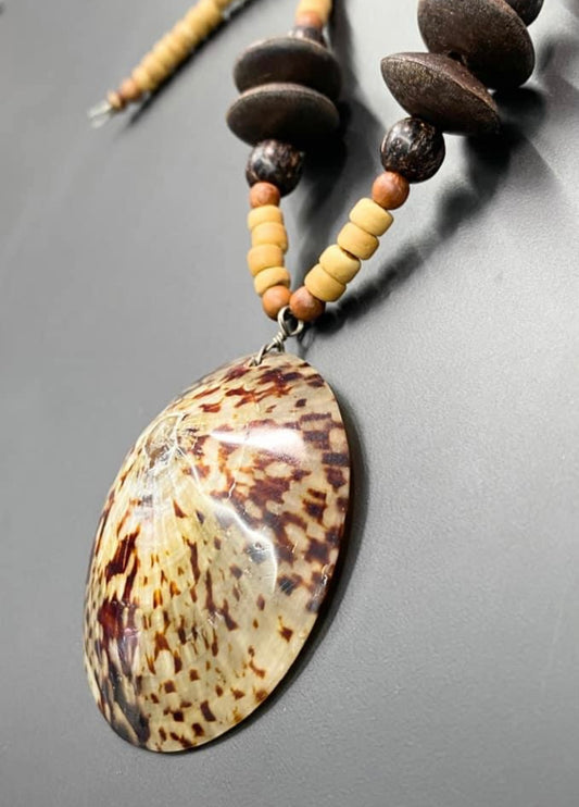 Limpet Shell & Wood Necklace Sterling Clasp