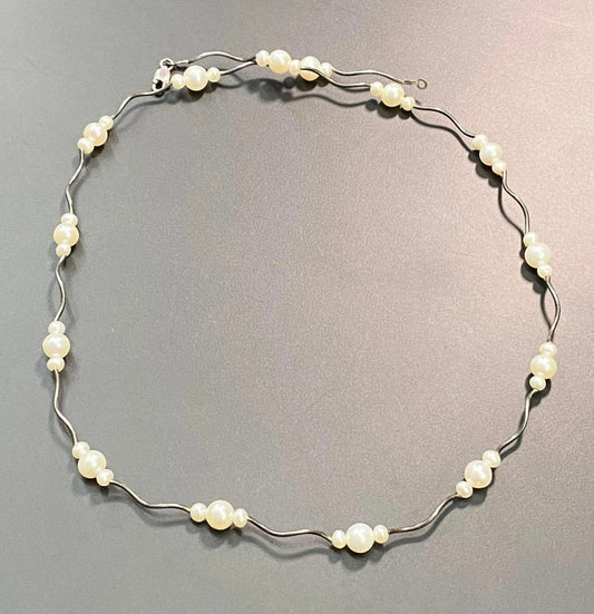 Vintage Sterling Silver Pearl Necklace