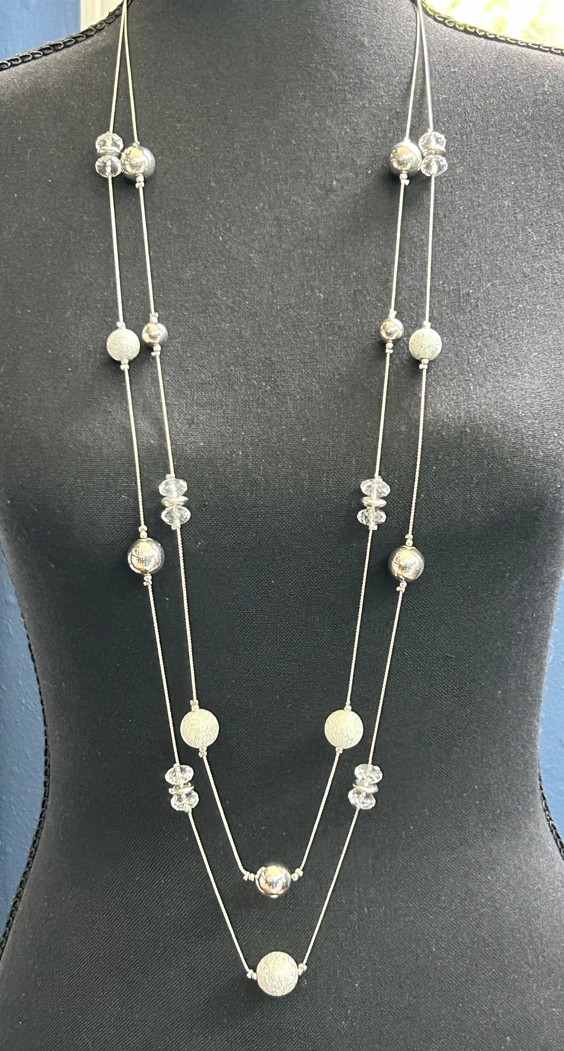 Silver tone acrylic bead necklace