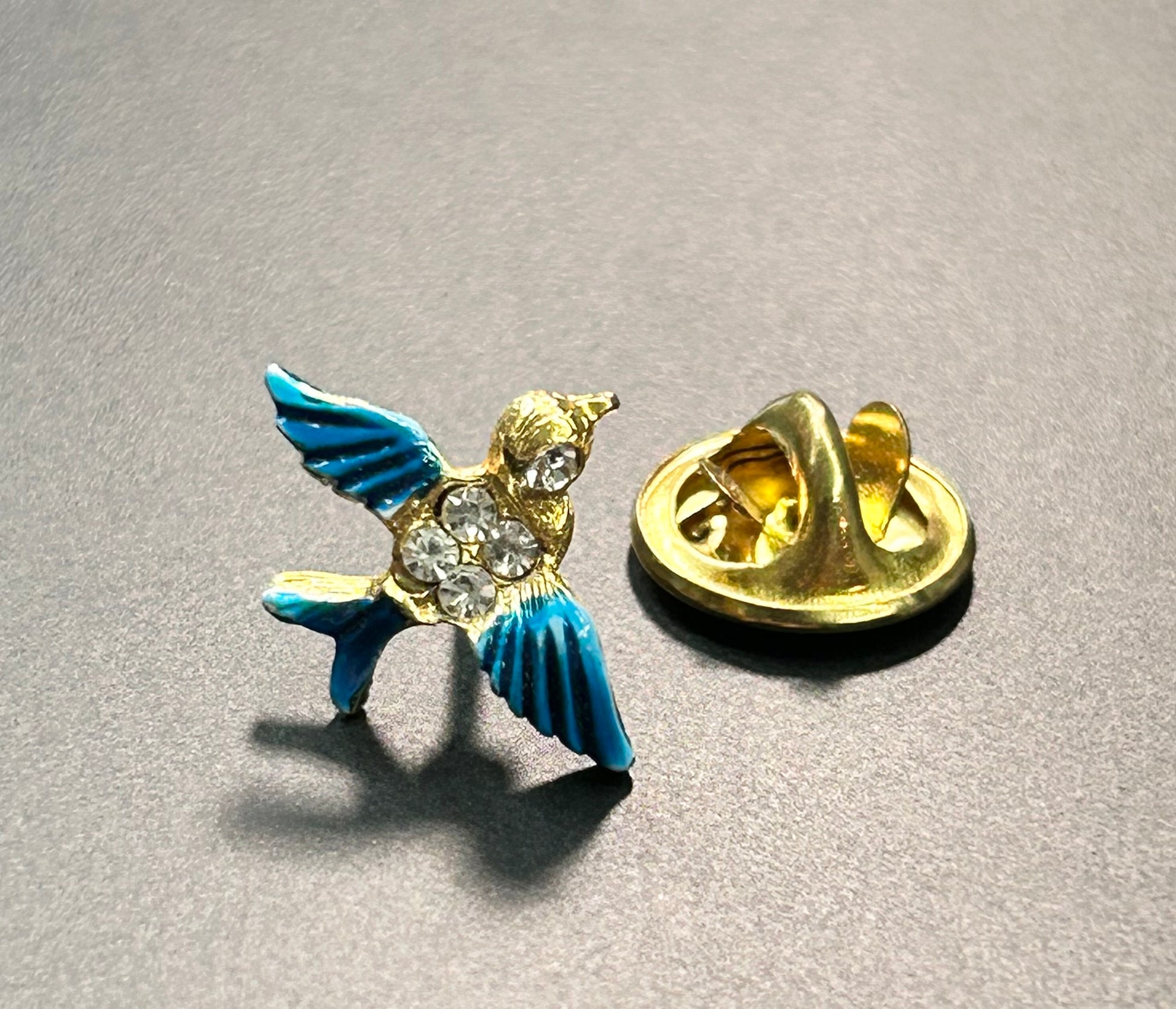 Vintage gold tone enamel and rhinestone bird pin