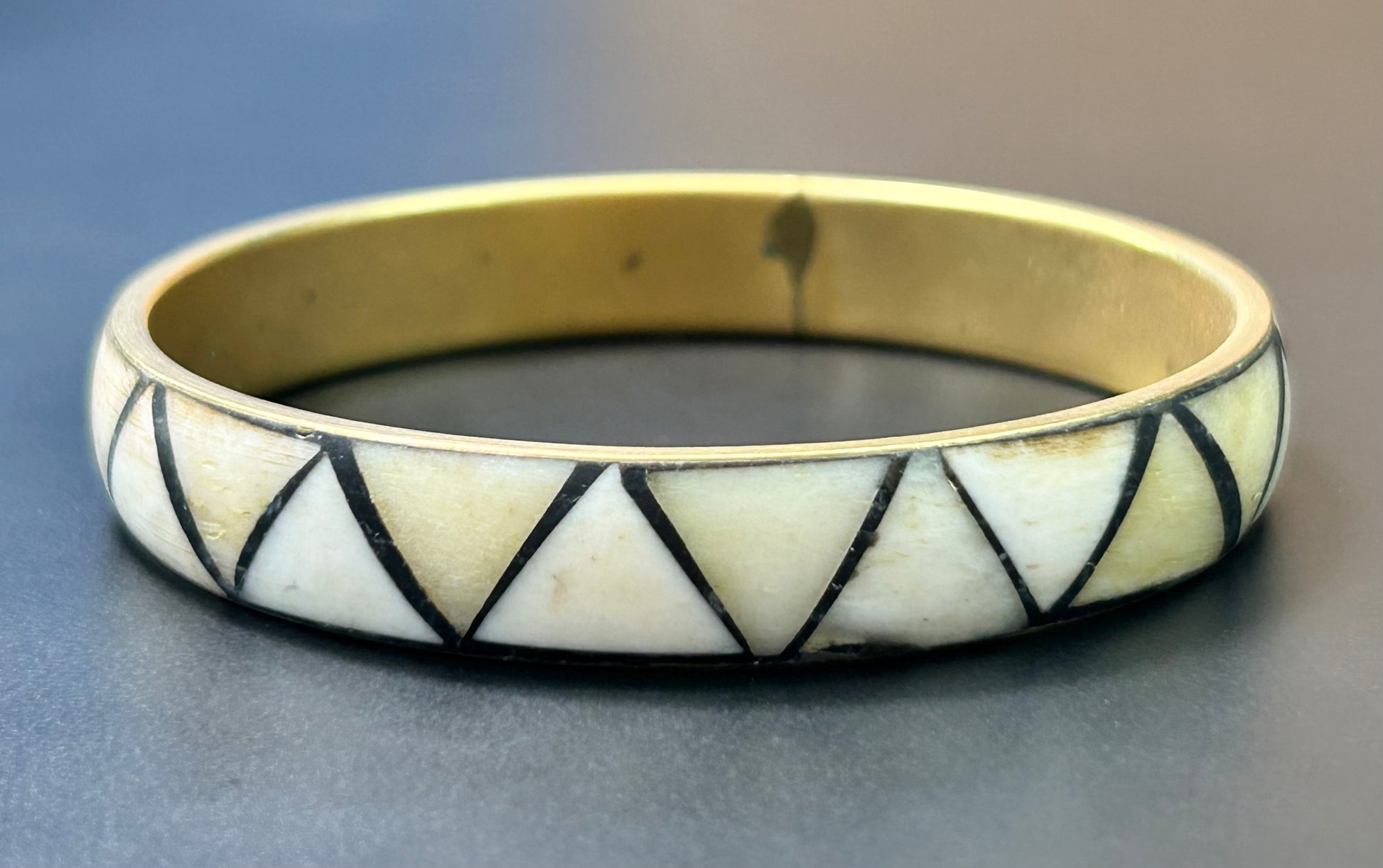 Bone inlay brass bangle bracelet
