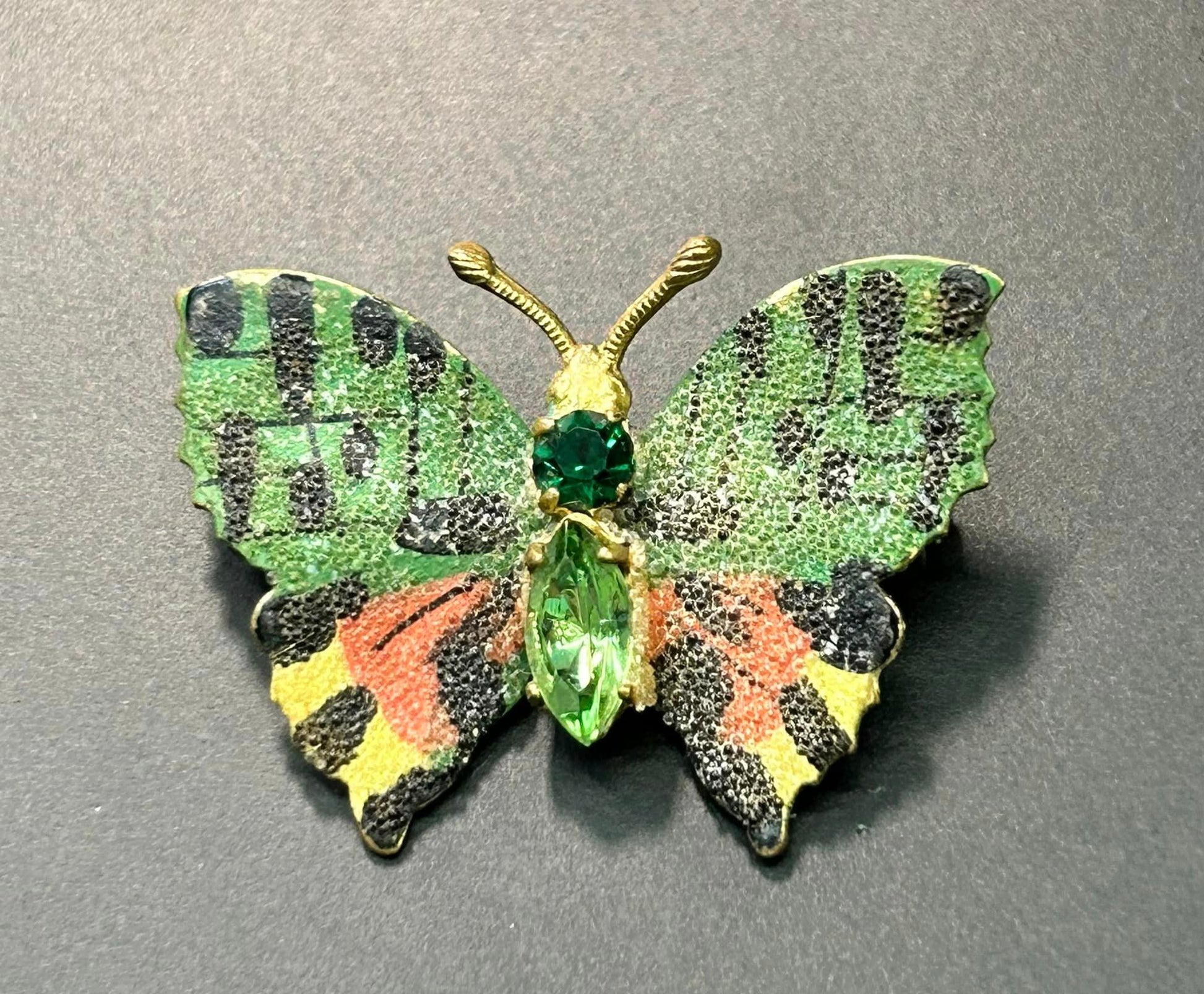 Gold tone rhinestone enamel butterfly brooch