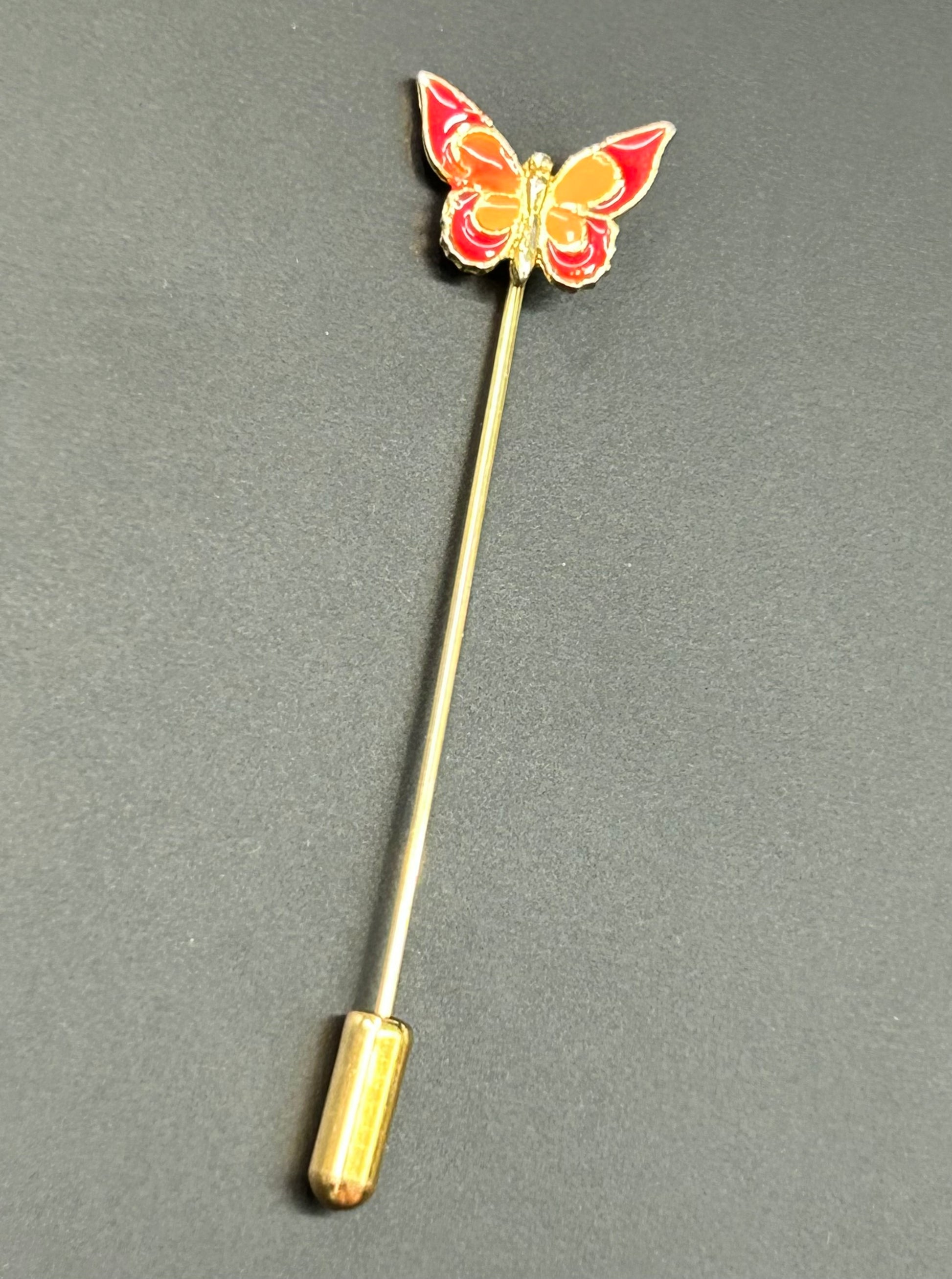 Gold tone enamel butterfly stick pin