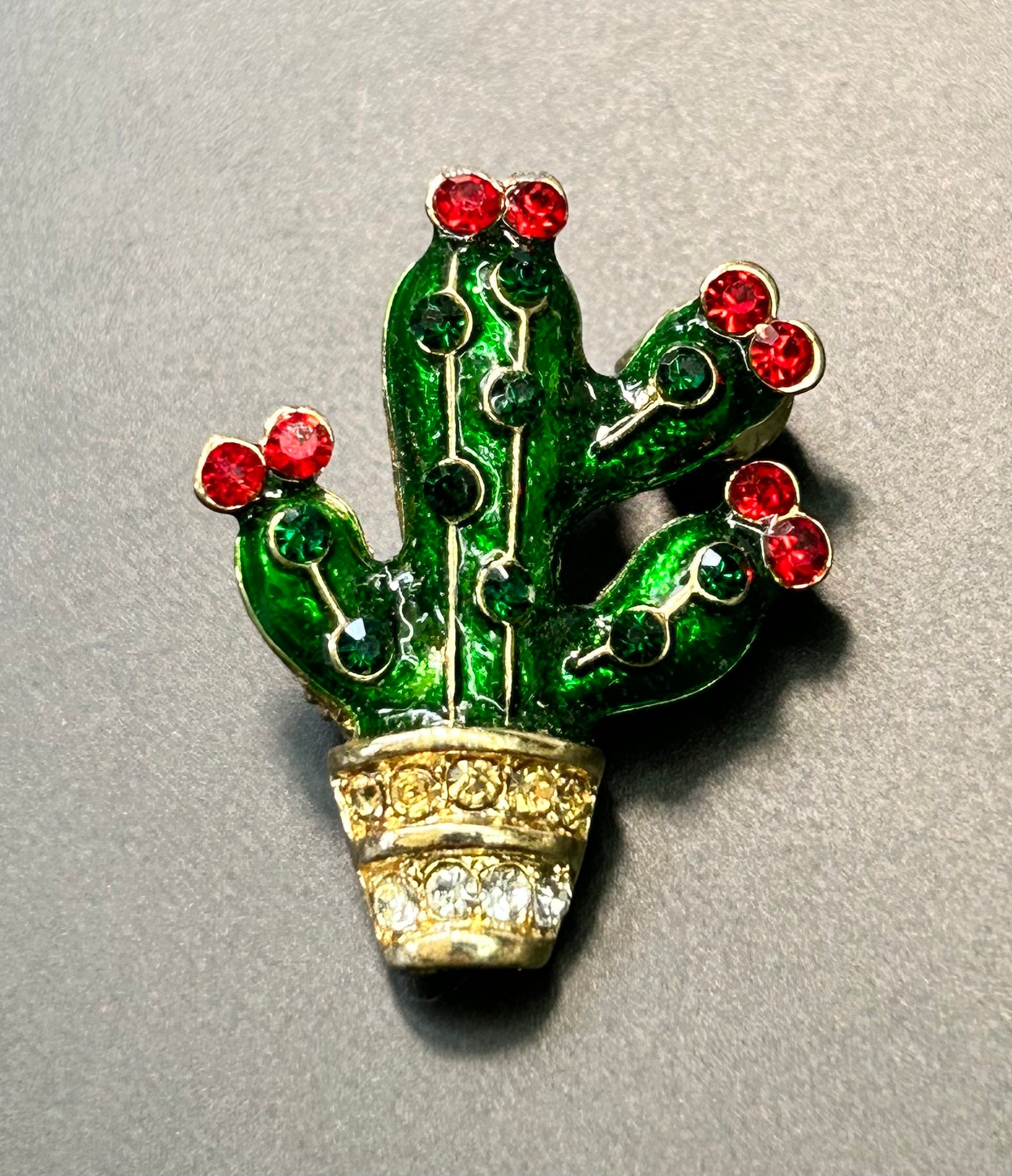 Enamel rhinestone cactus brooch and pendant combo