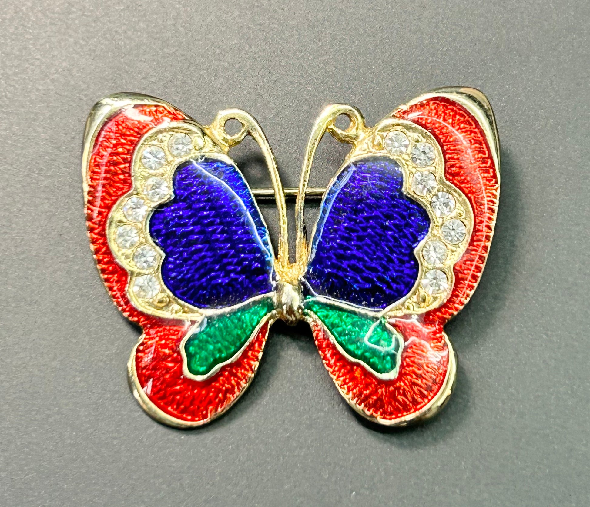 Gold tone colorful enamel and rhinestone butterfly brooch