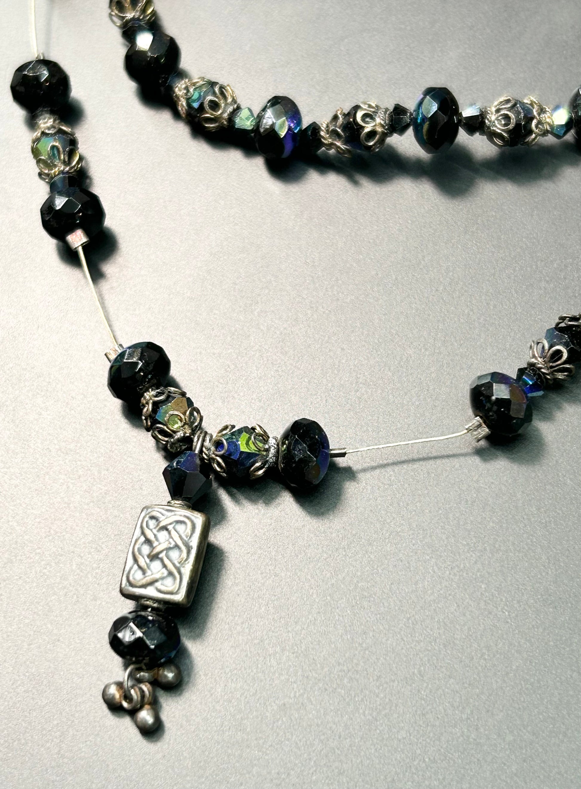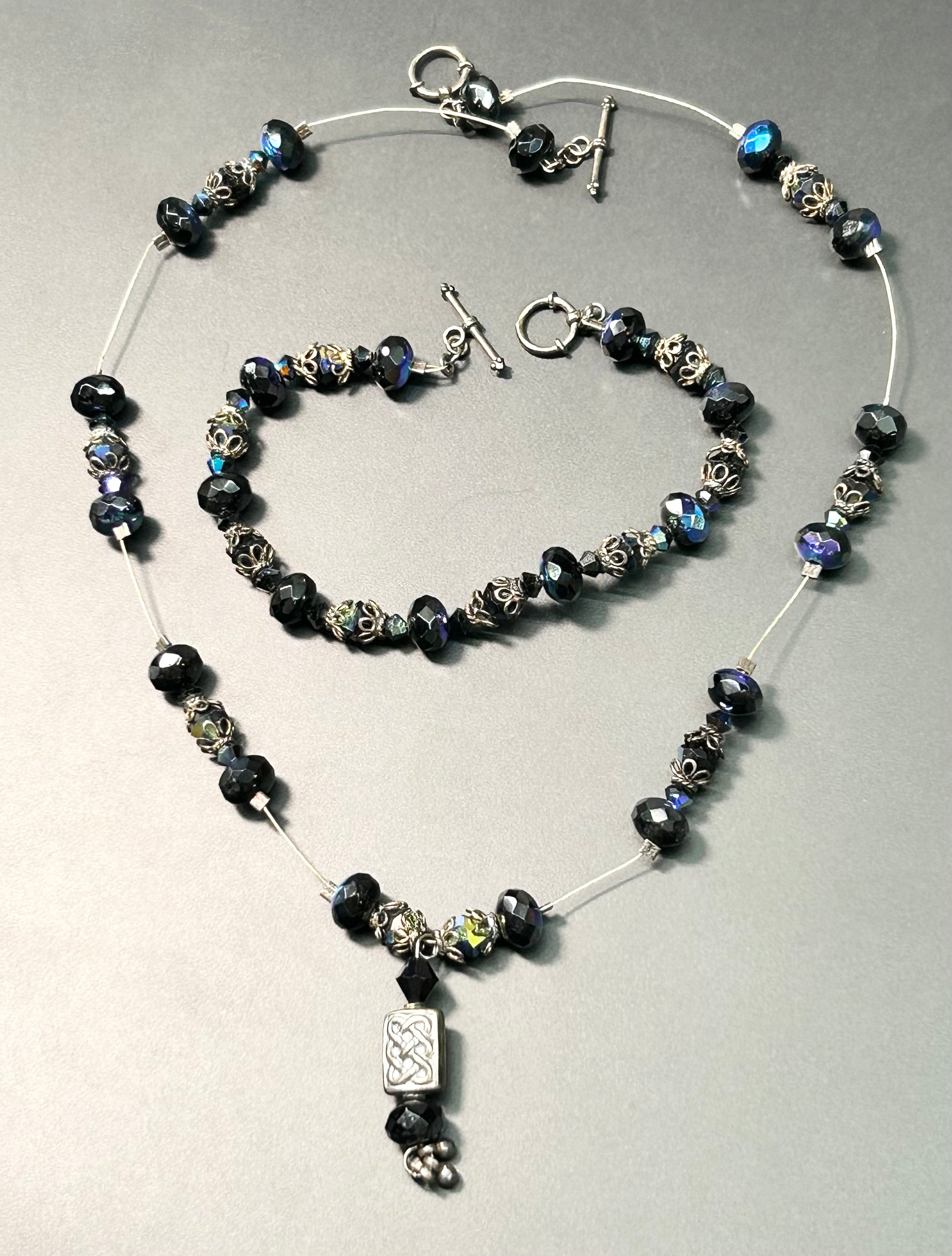 Silver tone faceted glass bead toggle necklace & bracelet set