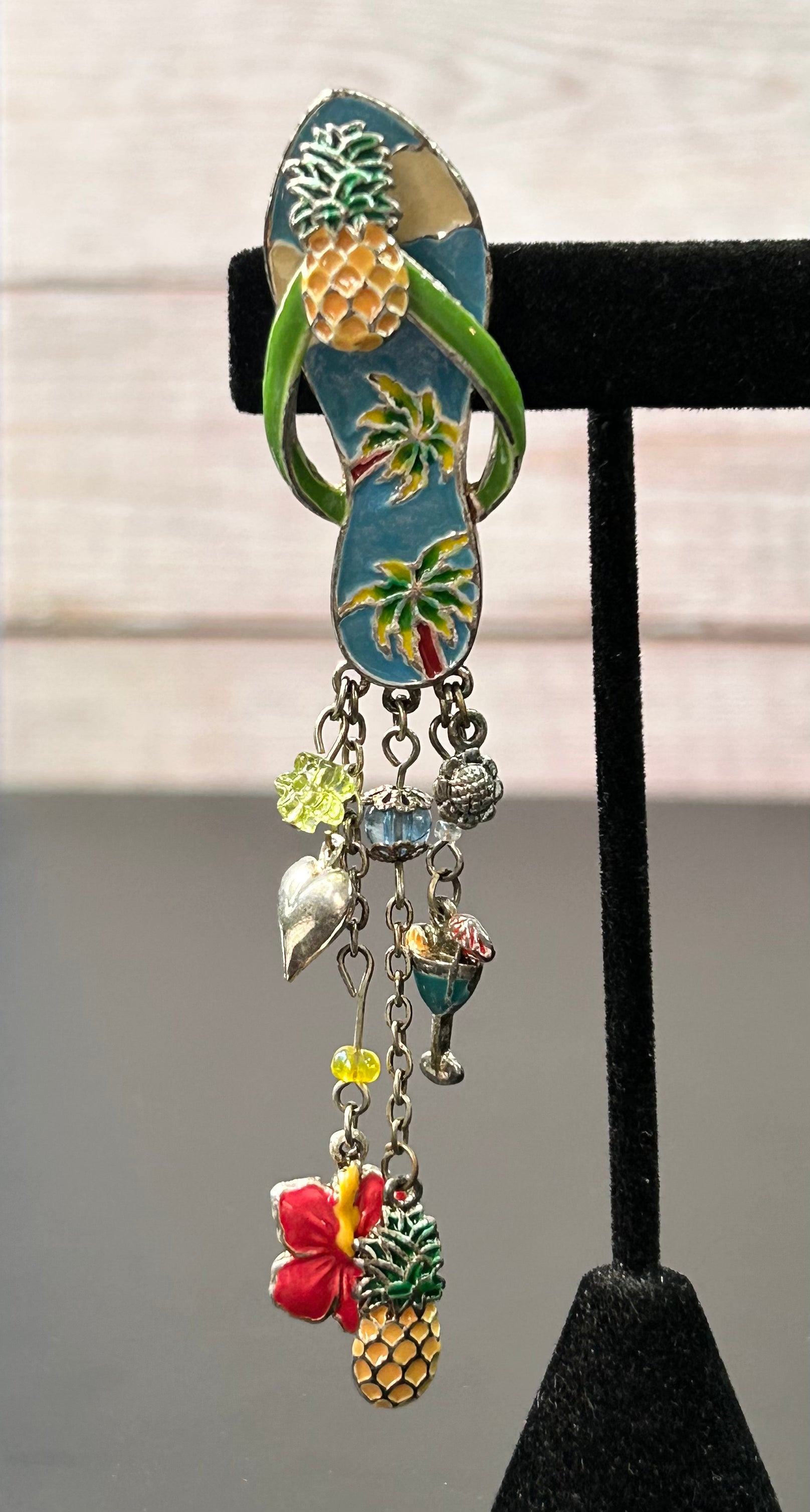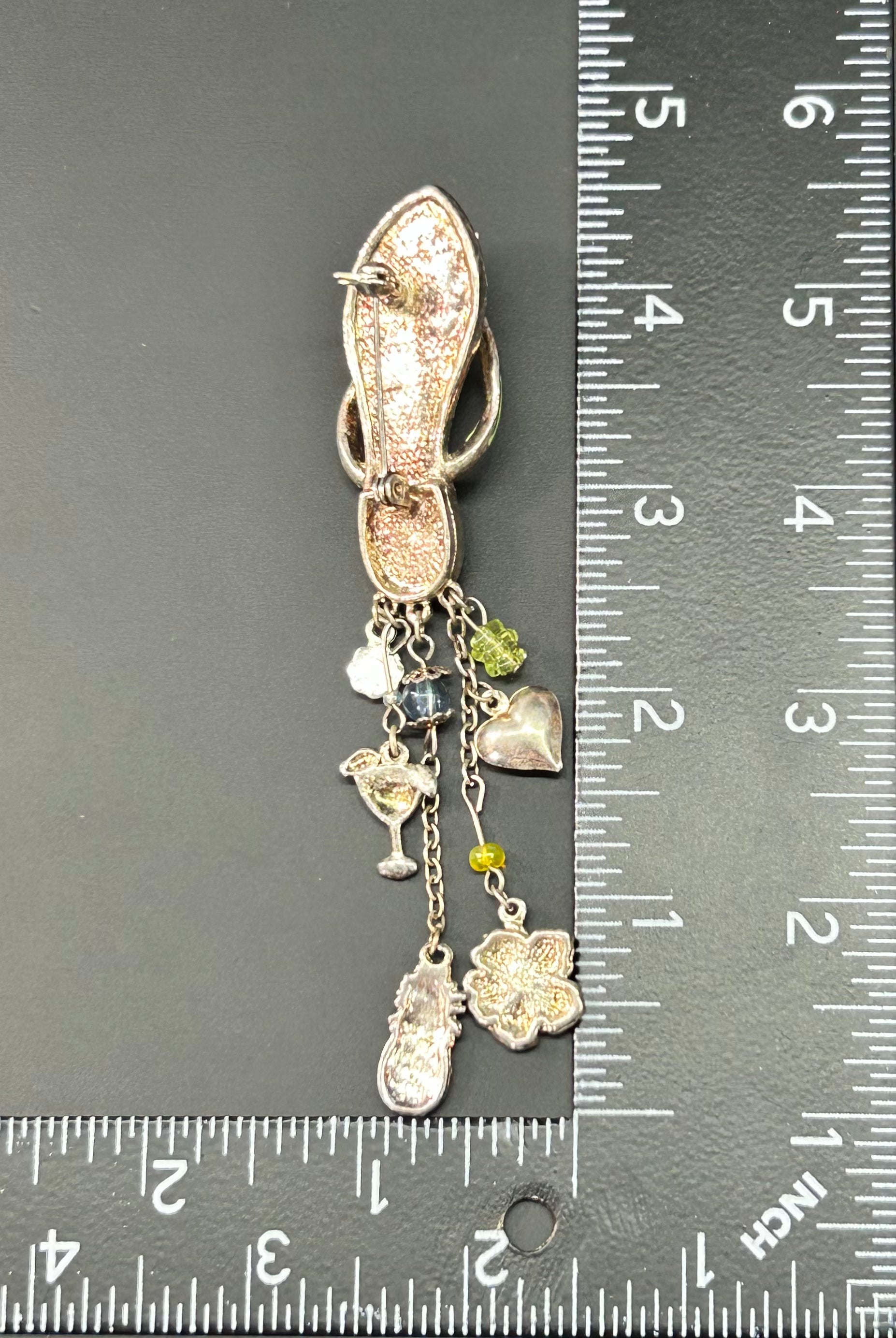Silver tone enamel flip flop charm brooch