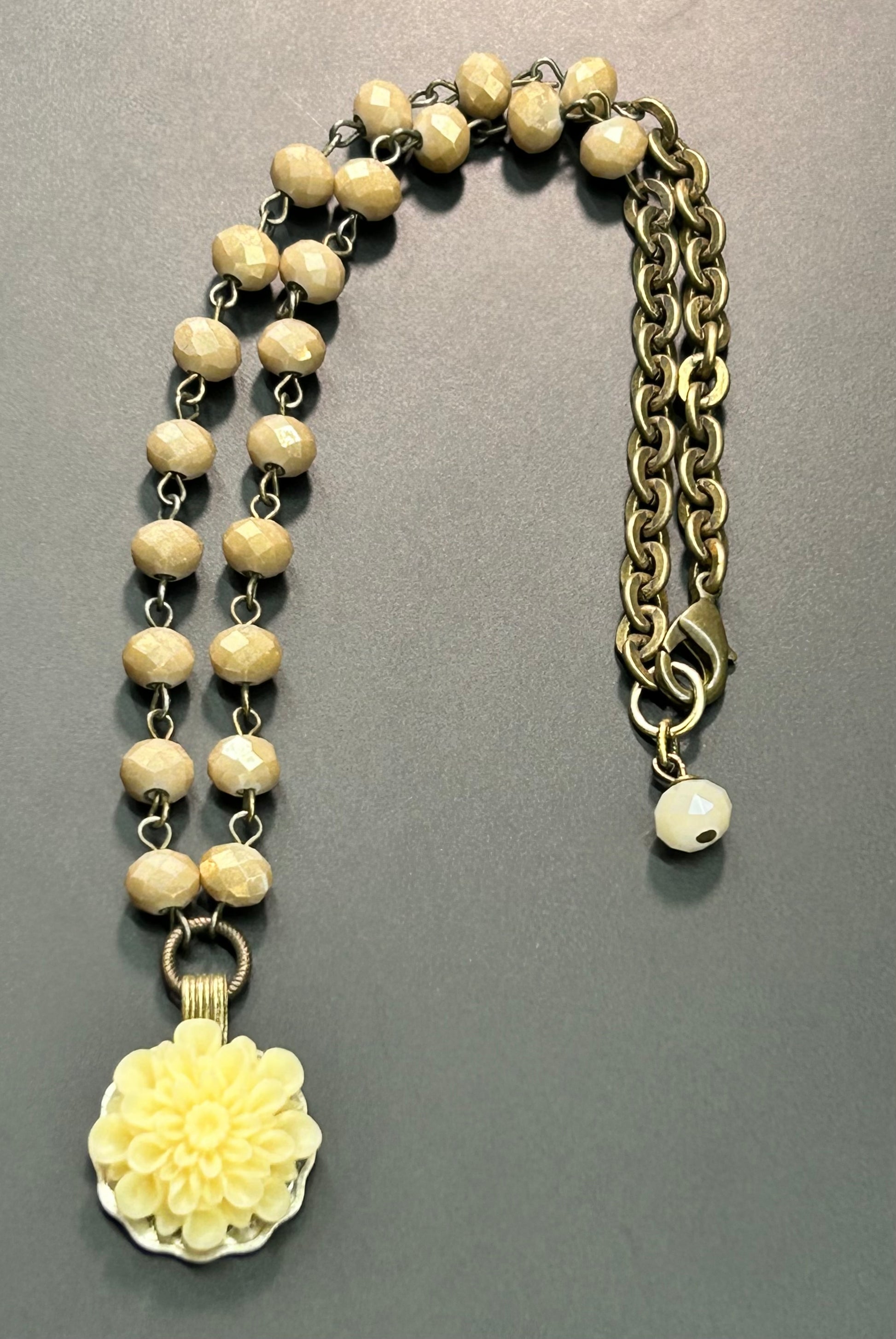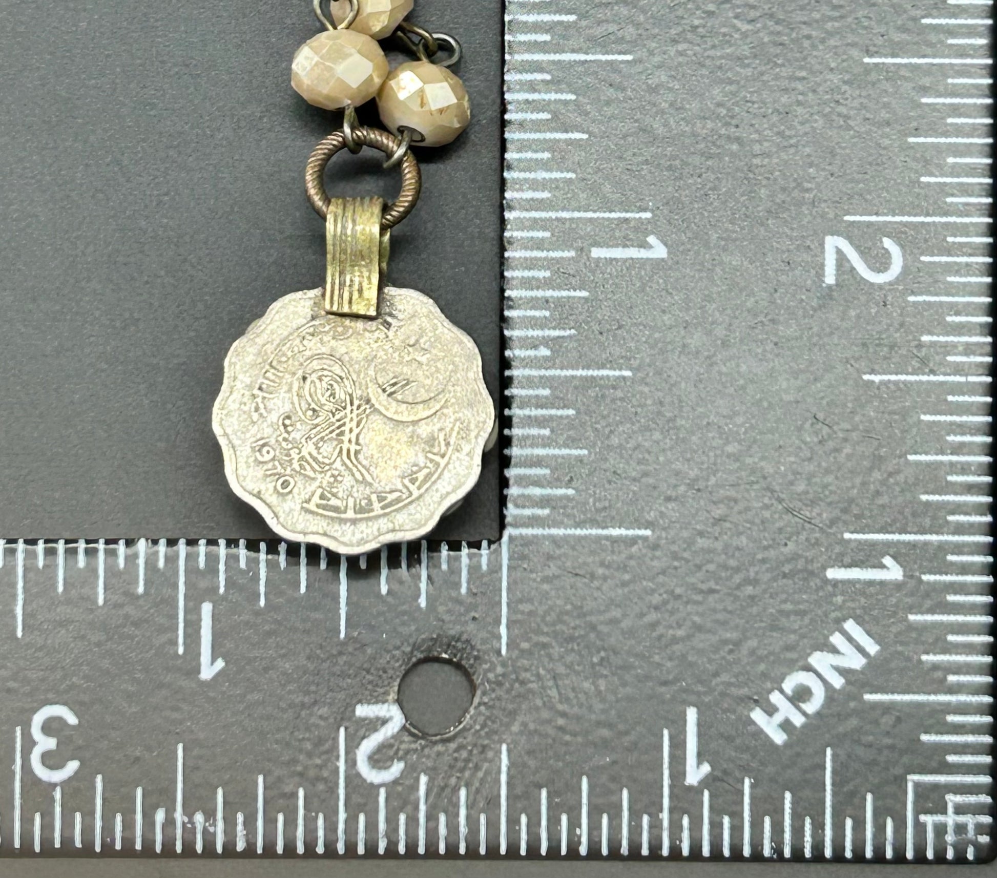 Acrylic flower affixed to Arabic coin pendant glass bead necklace