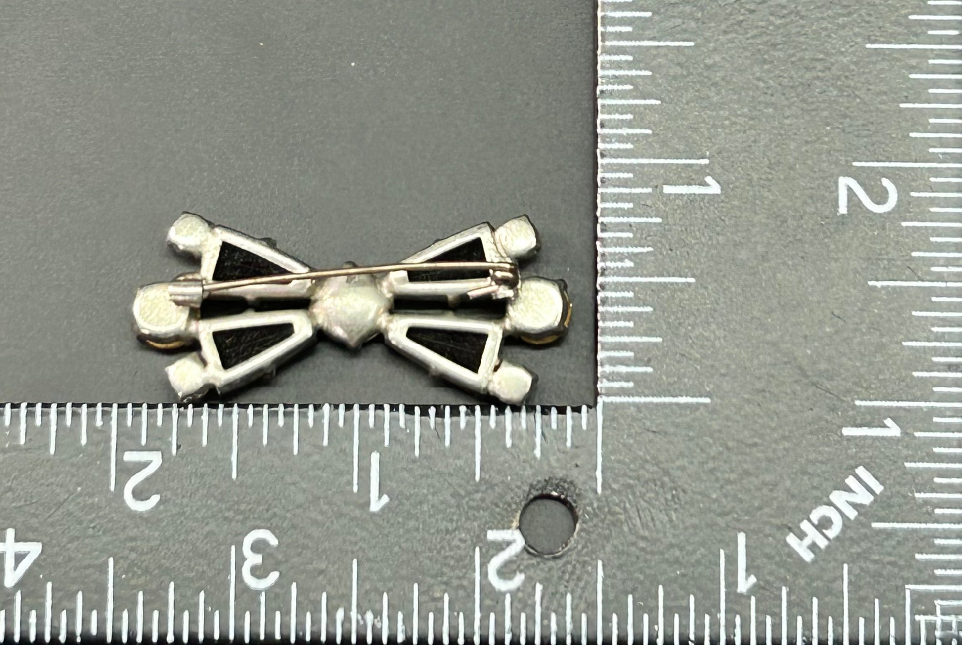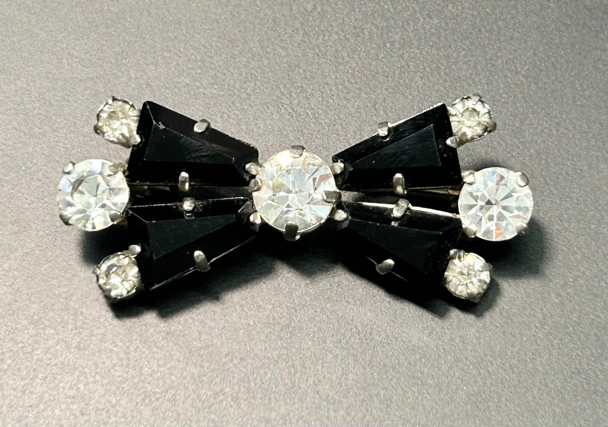 Vintage black and white glass rhinestone brooch with c clasp closure