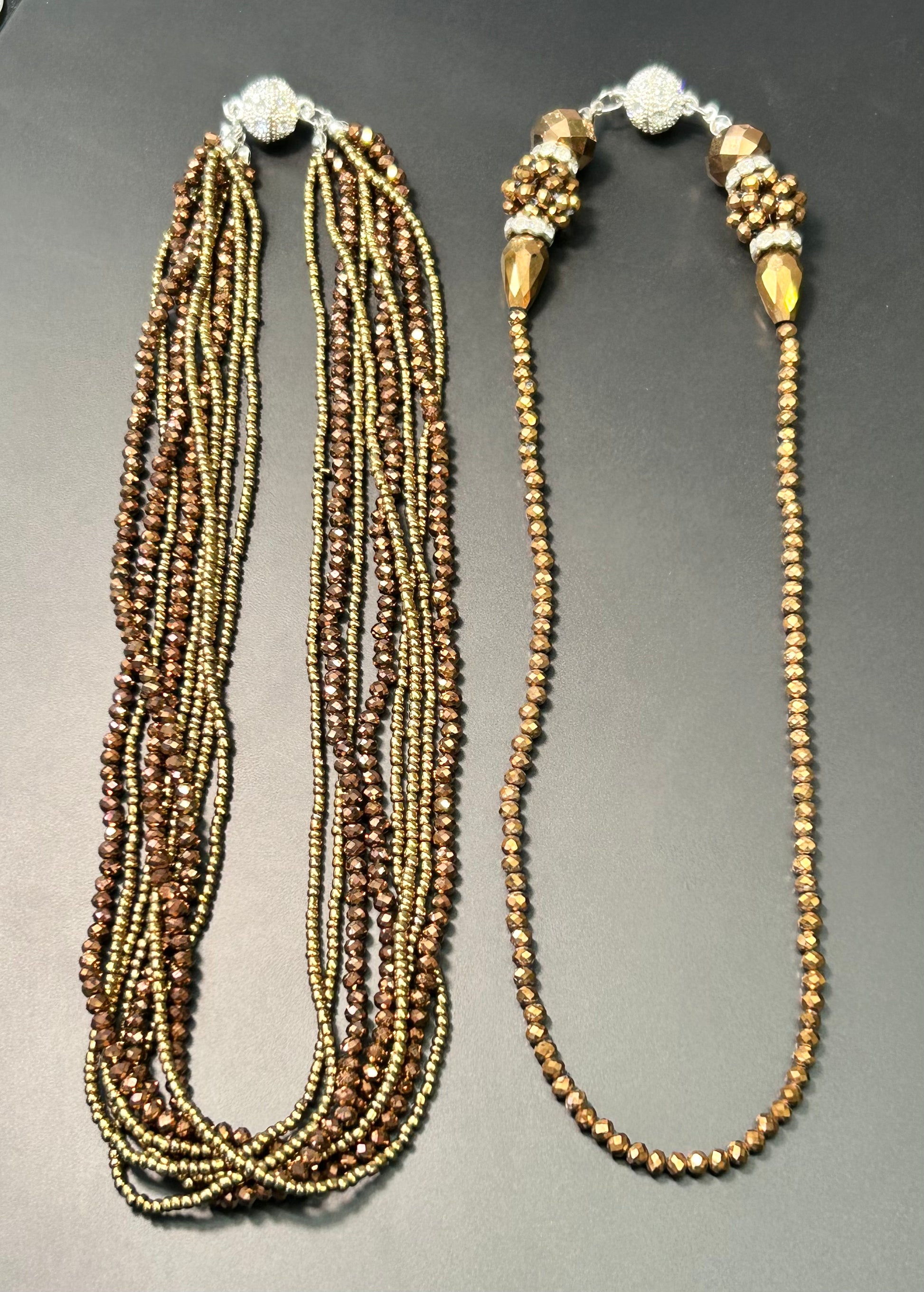 Faceted glass and seed bead interchangeable 2 in 1 magnetic closure necklace