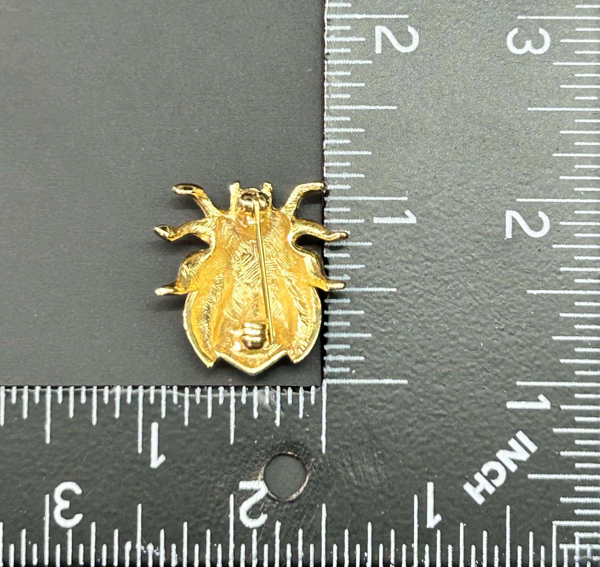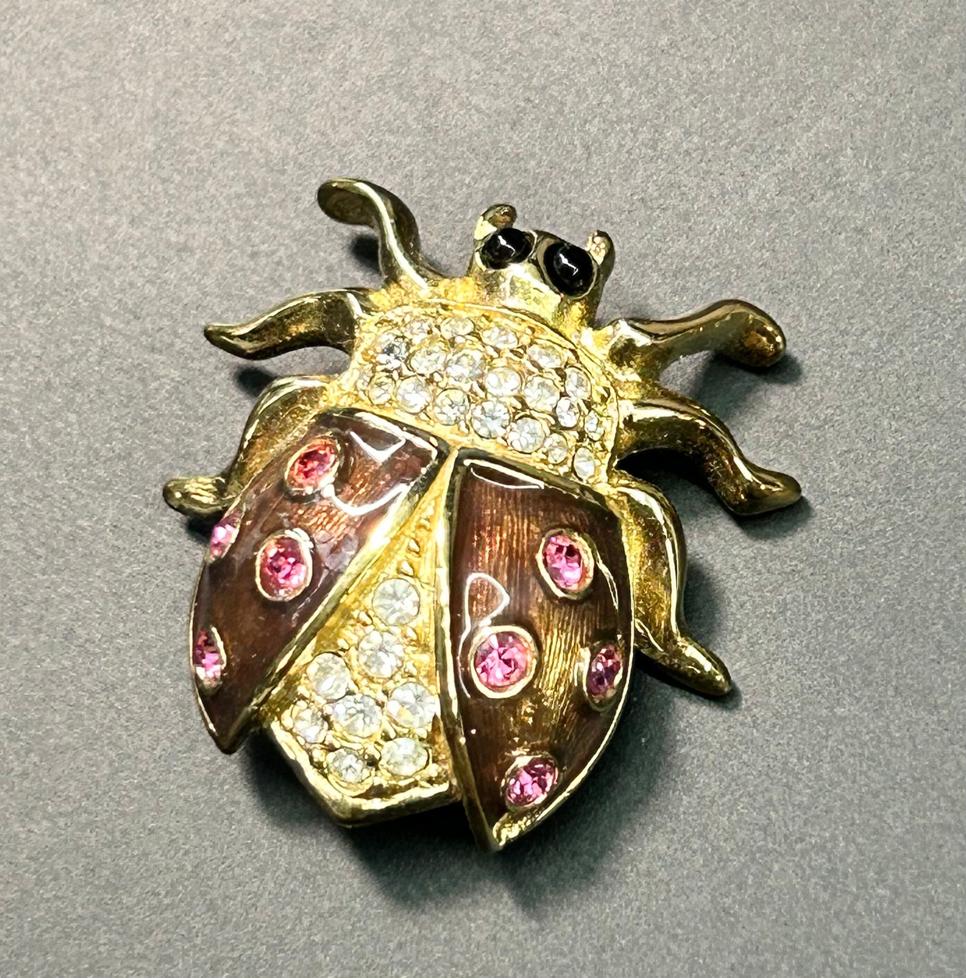 Gold tone enamel and rhinestone ladybug brooch