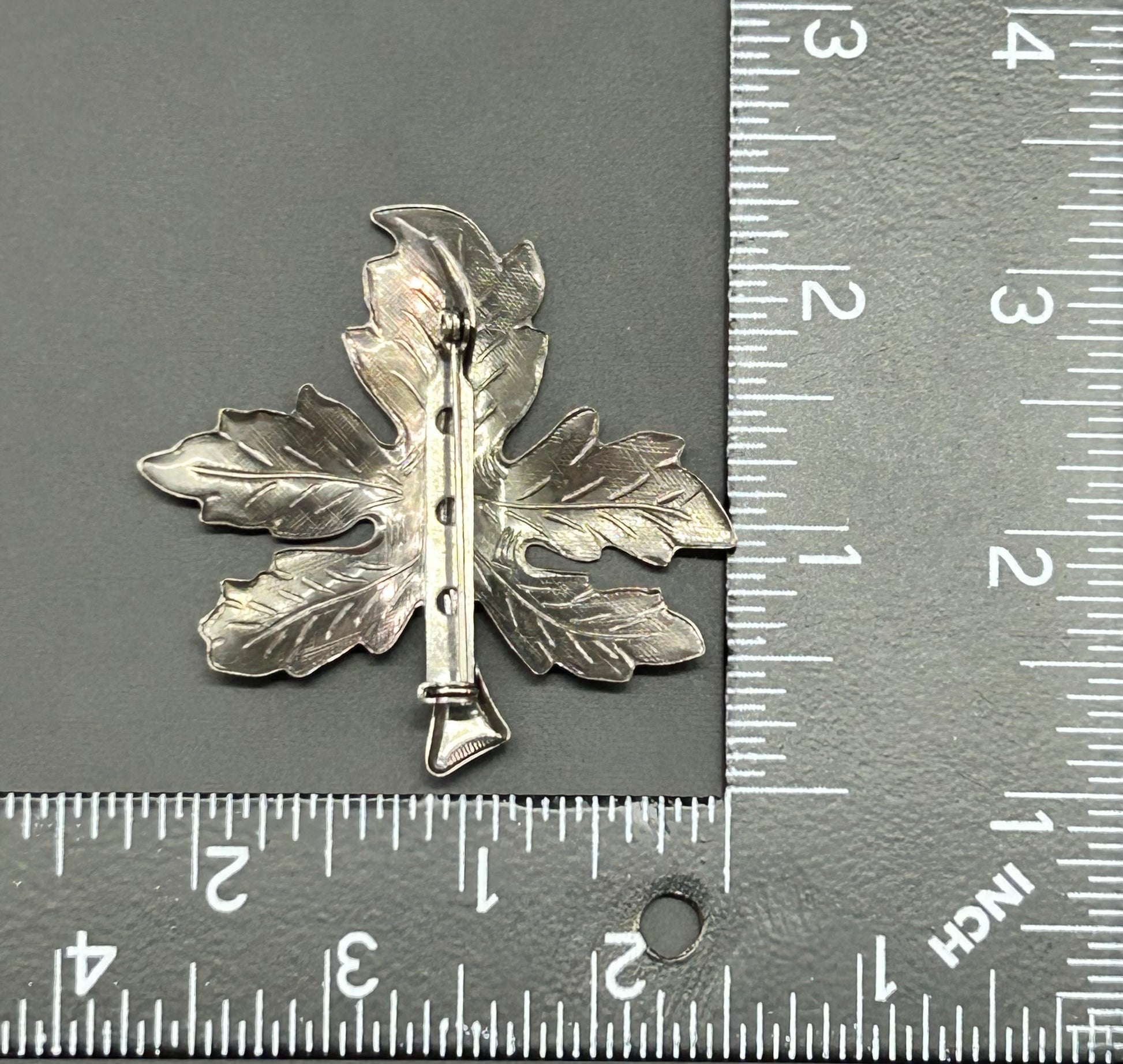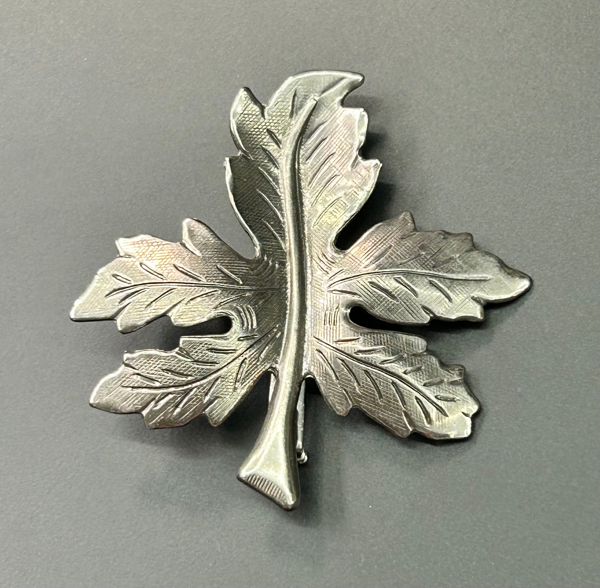 Silver tone leaf brooch