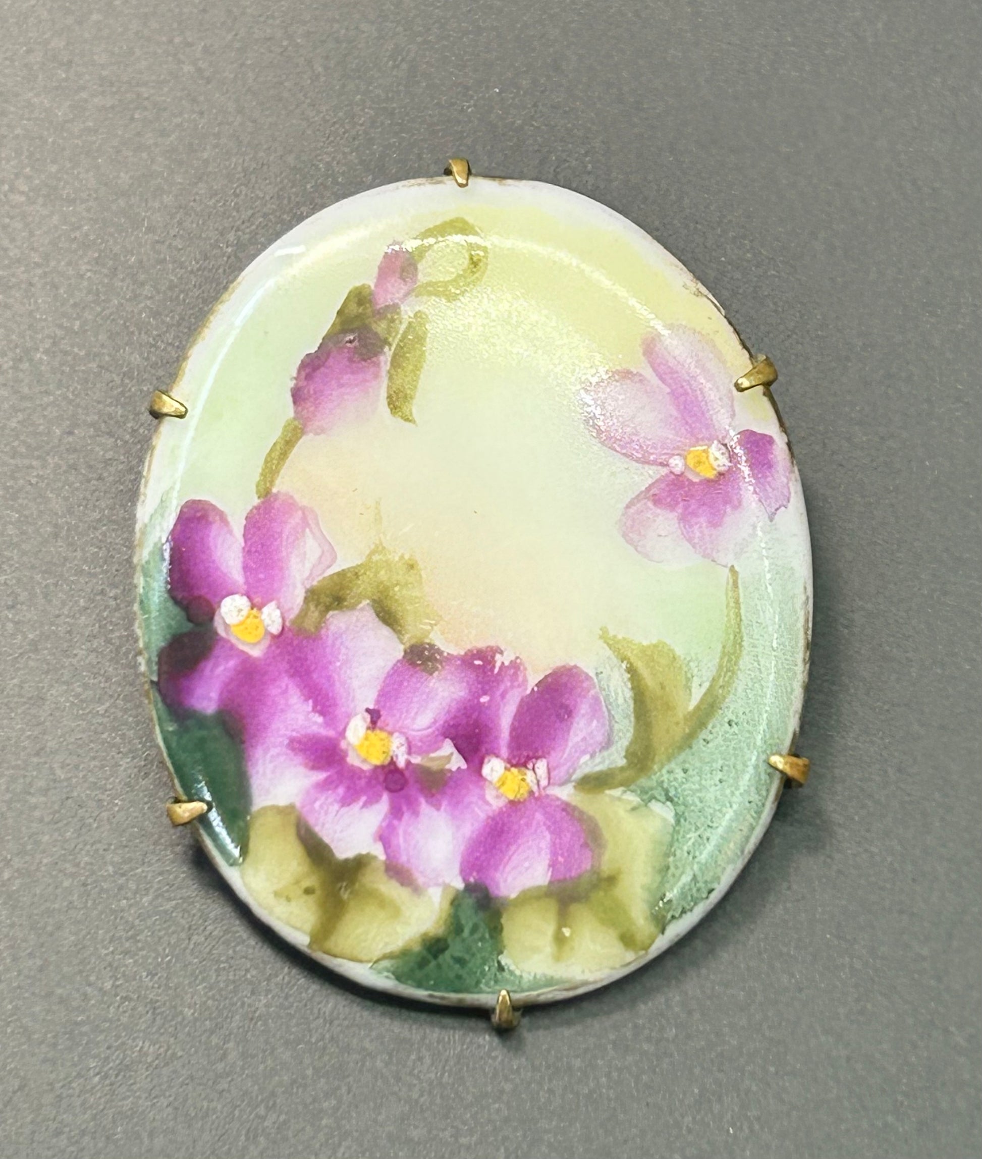 Porcelain painted flower brooch with c clasp