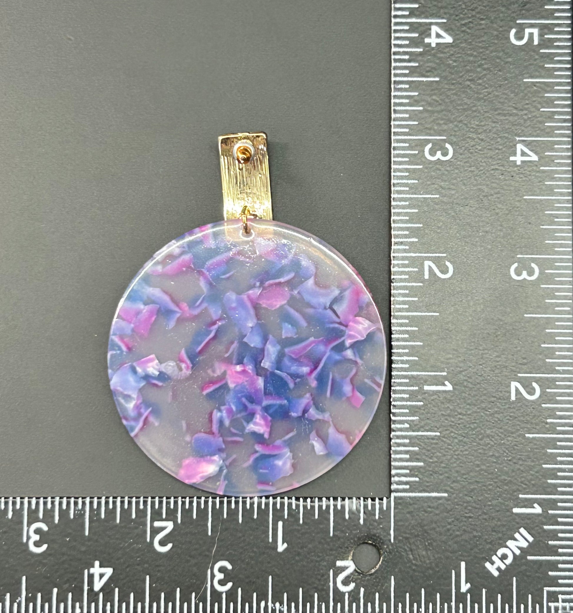 Gold tone and purple acrylic earrings