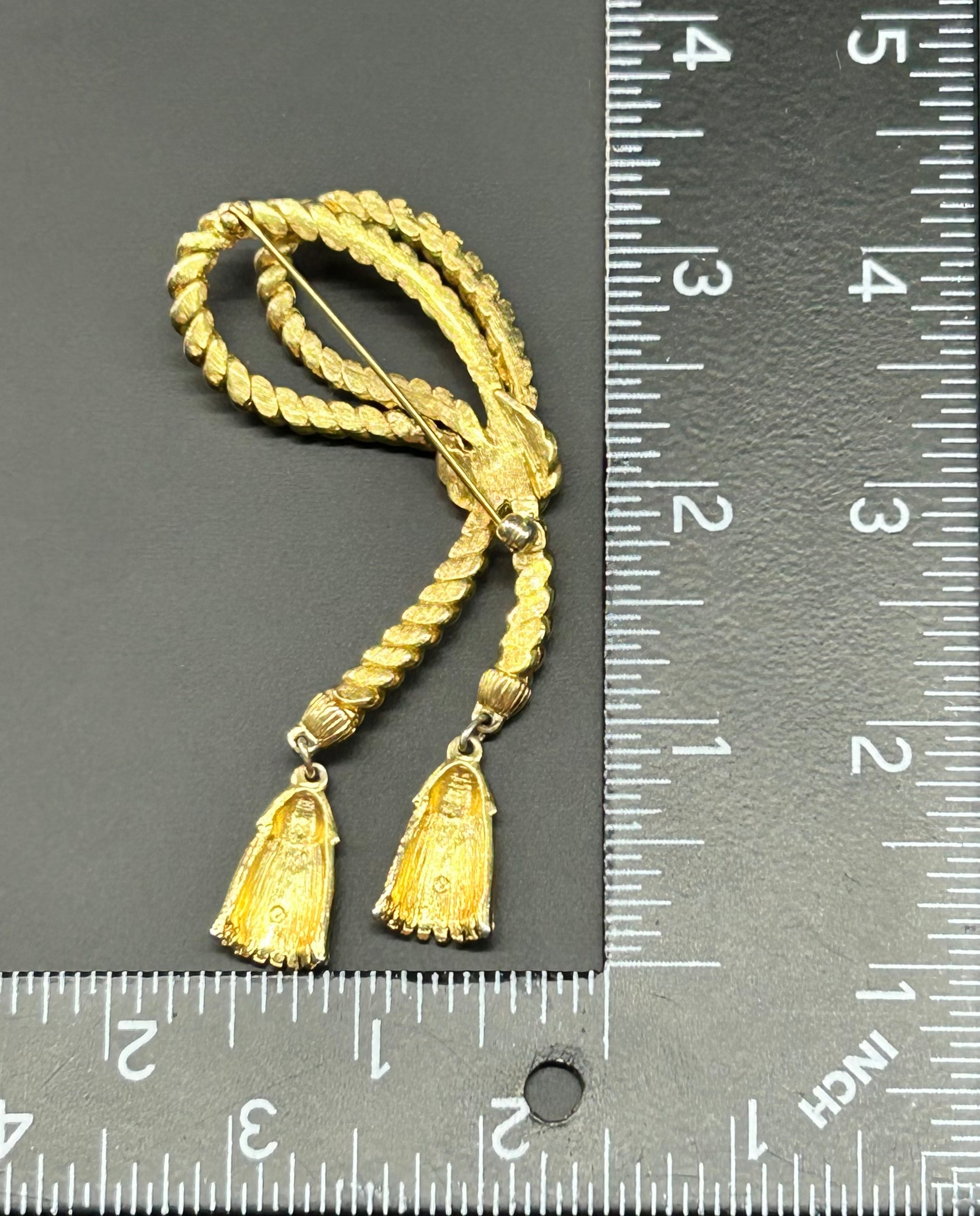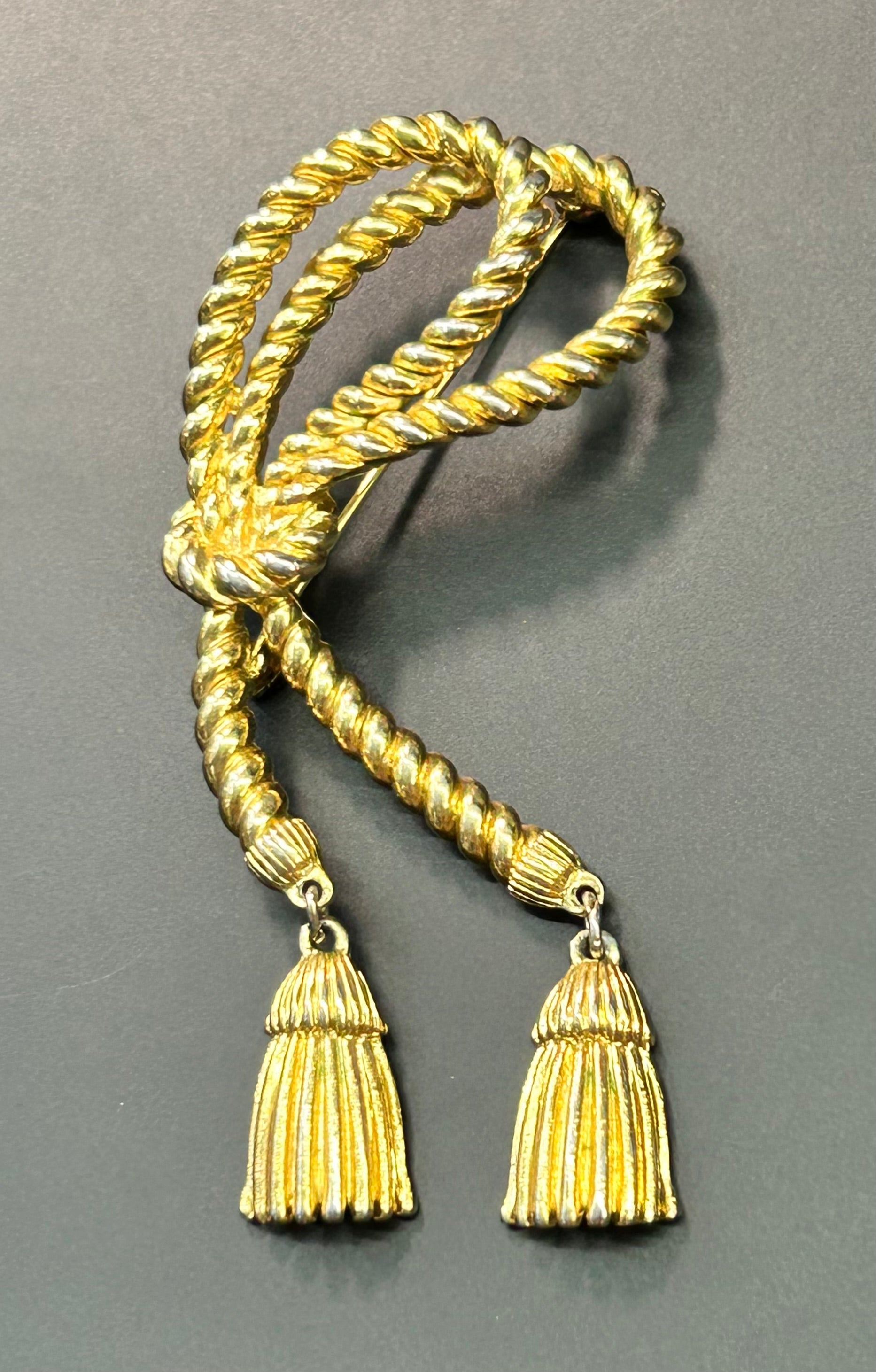 Gold tone rope with tassels brooch