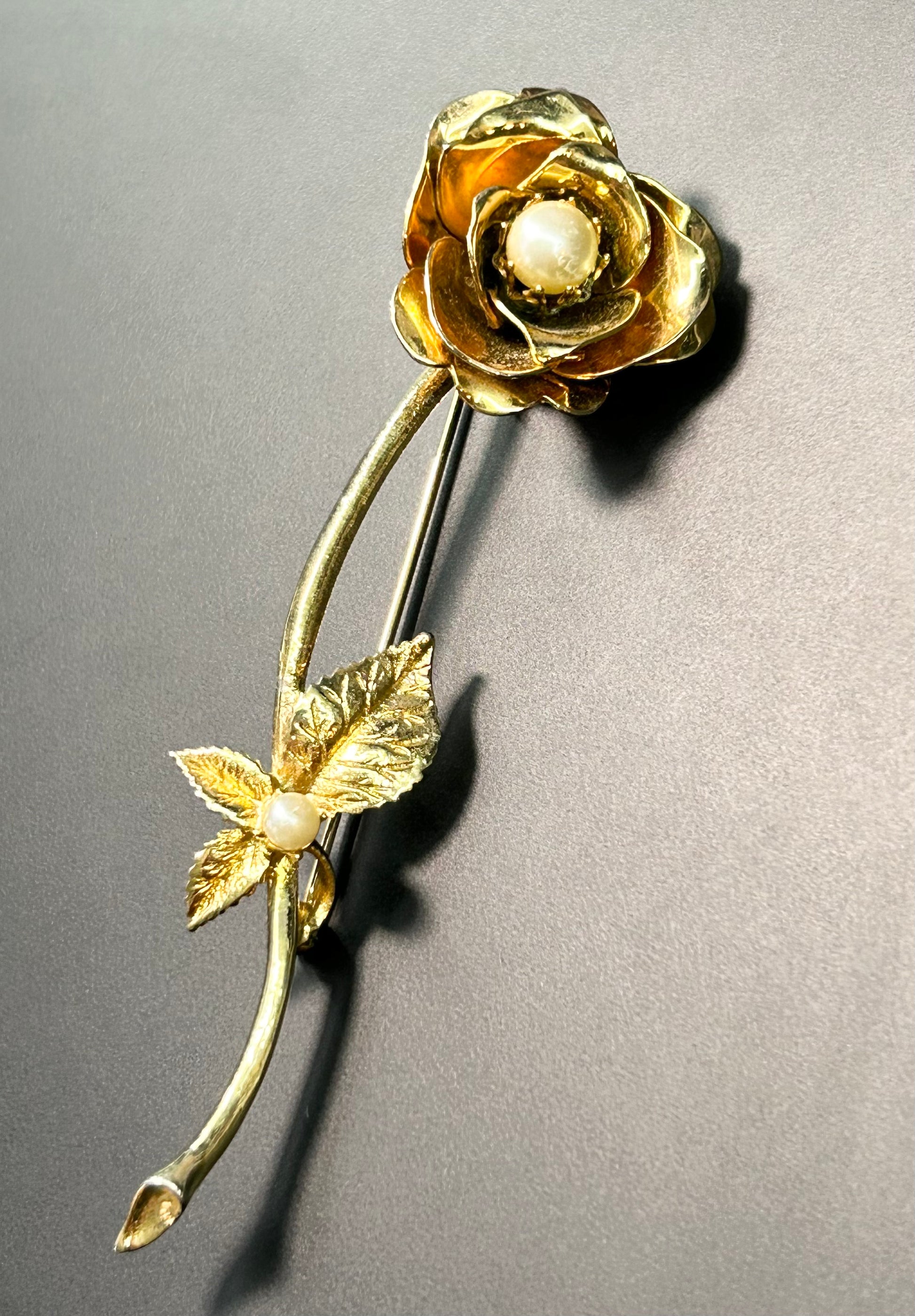 Gold tone faux pearl rose brooch