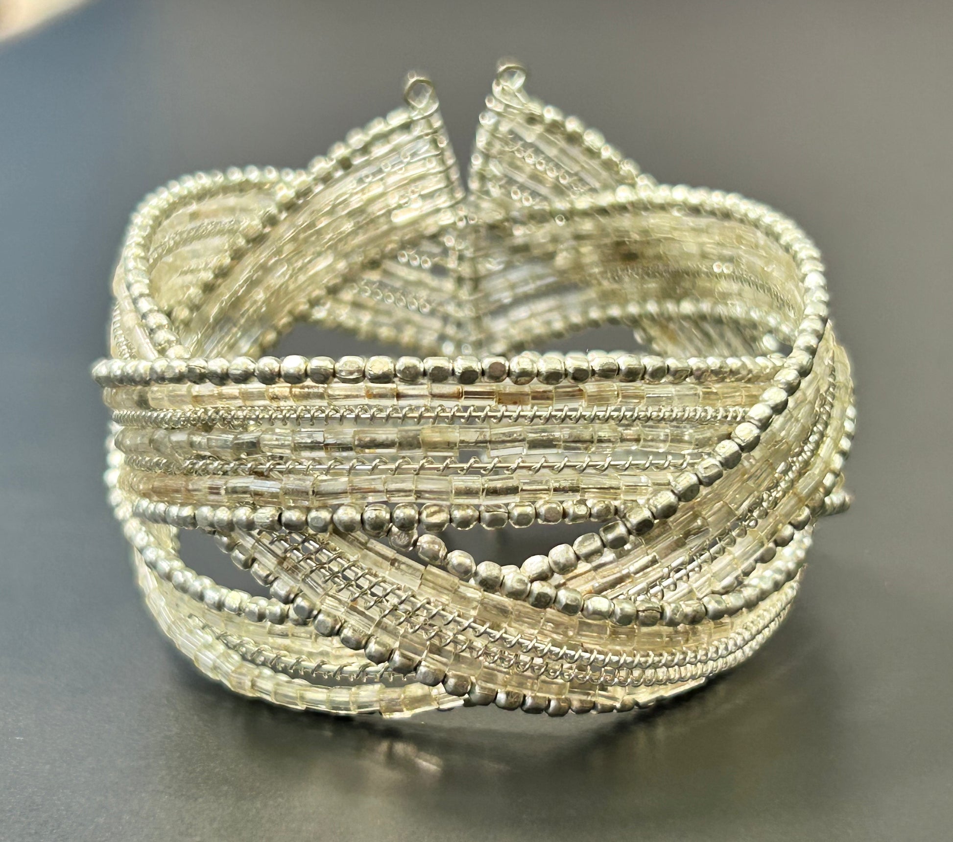 Silver & clear seed bead cuff bracelet