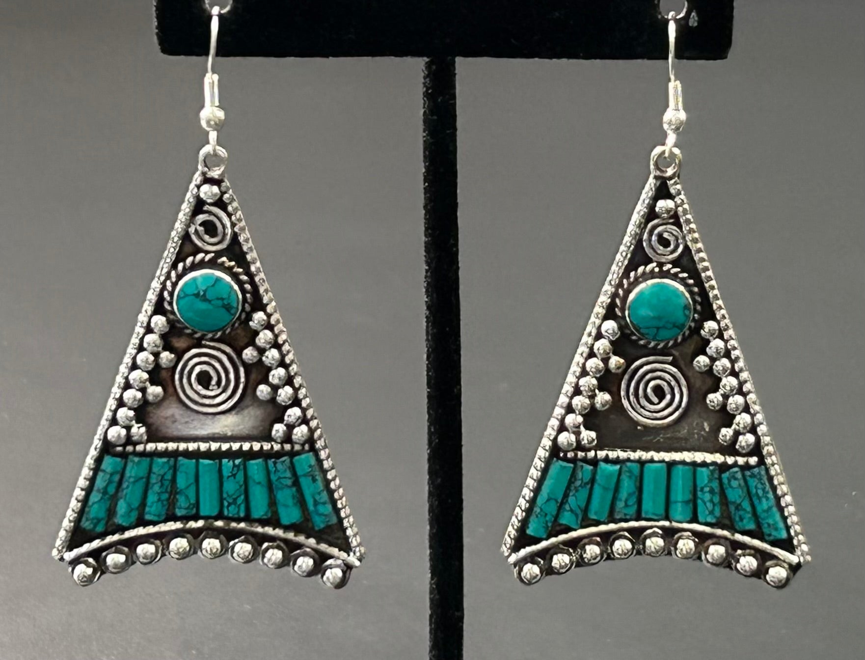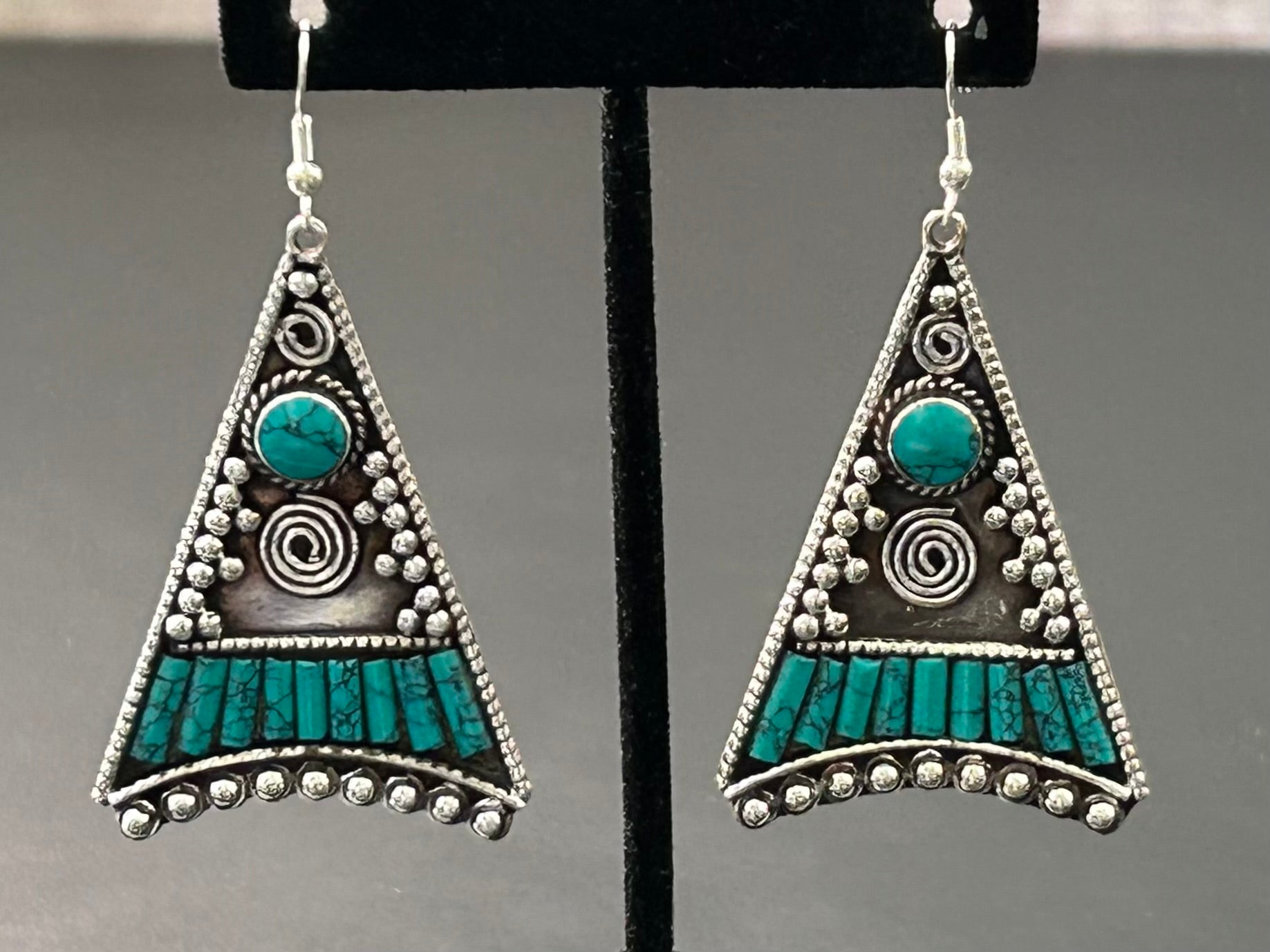 Silver tone faux turquoise earrings