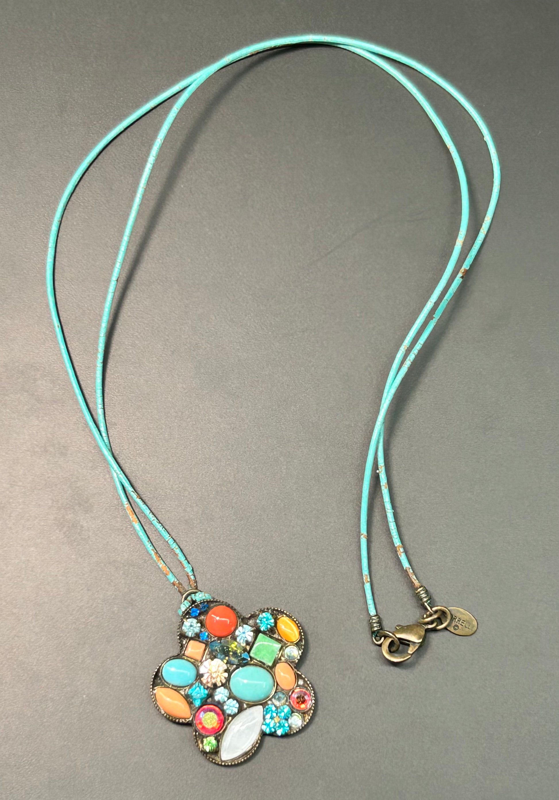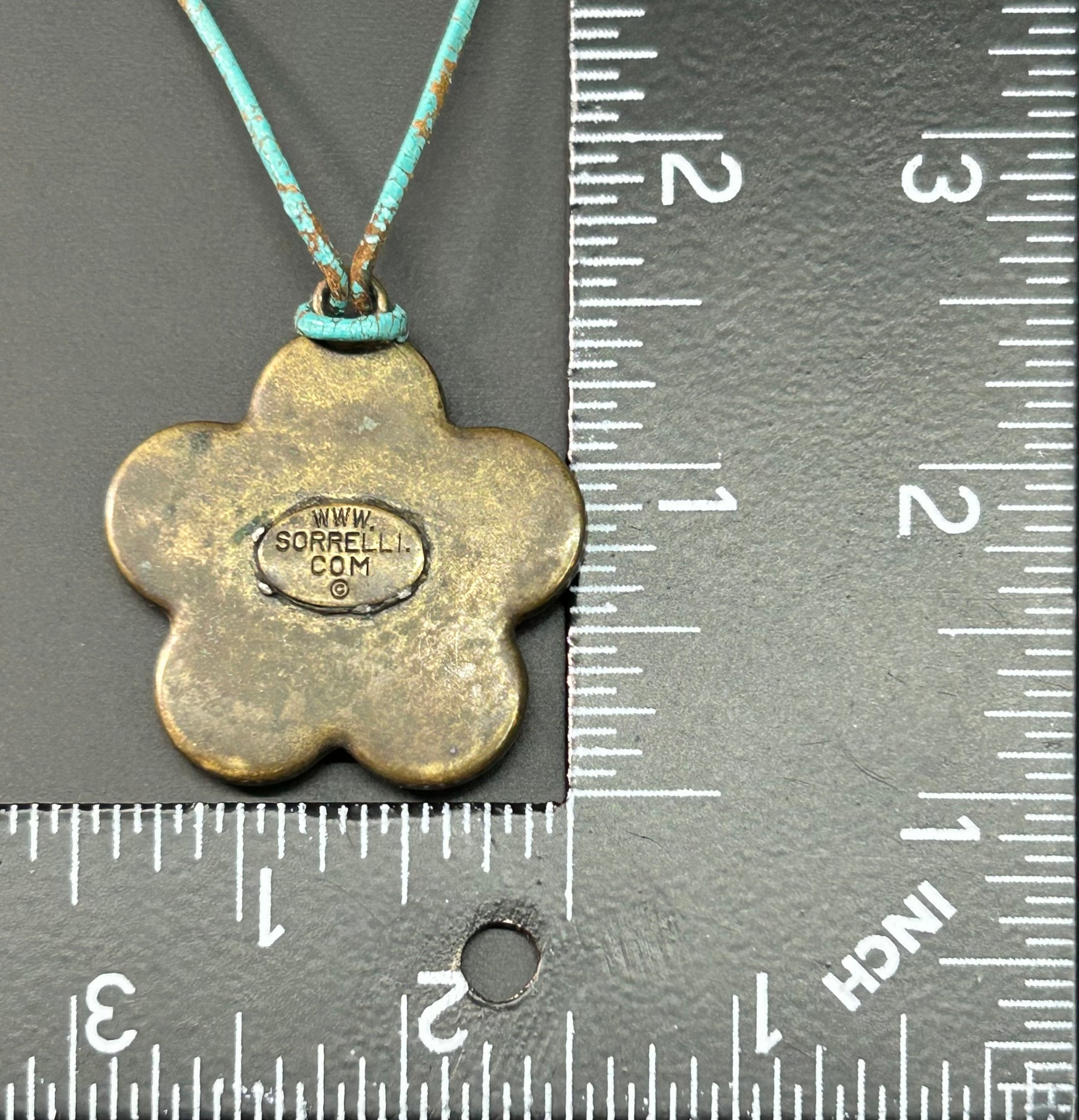 Brass tone rhinestone flower pendant cord necklace