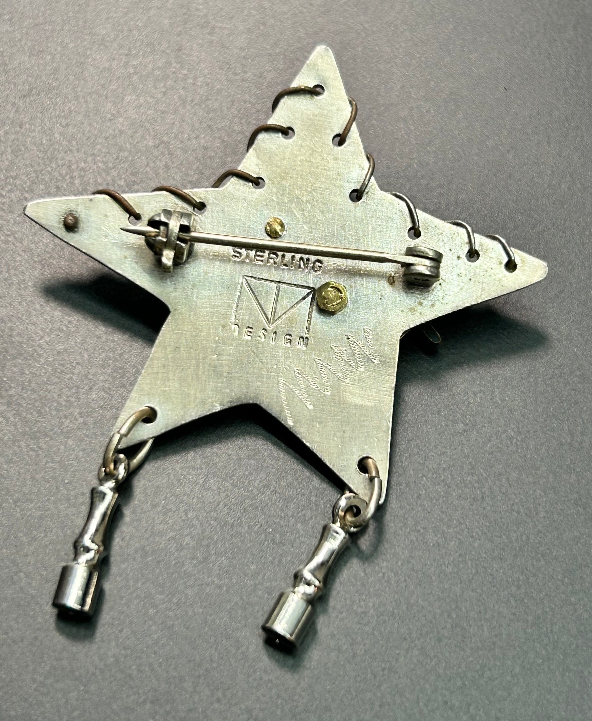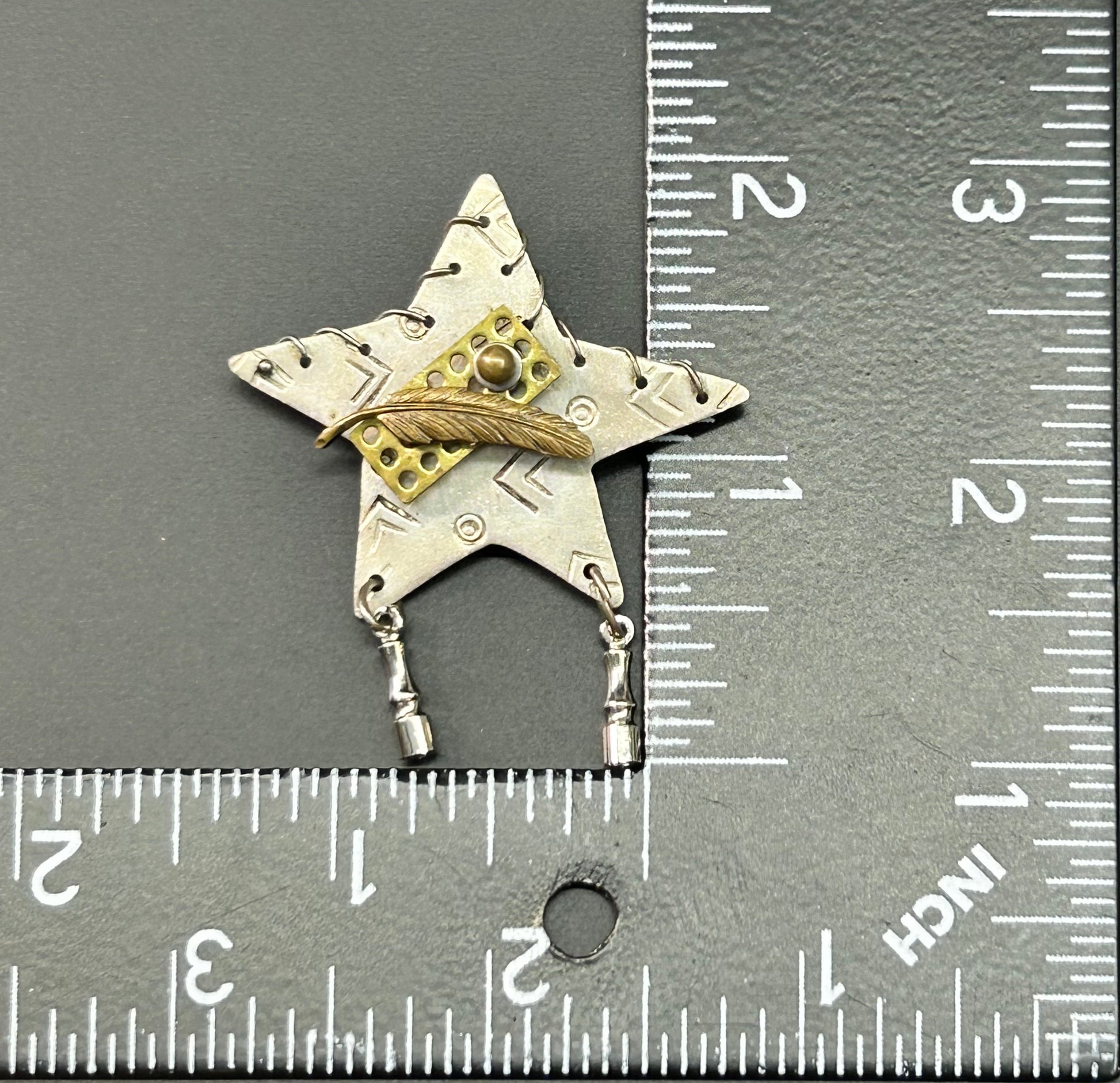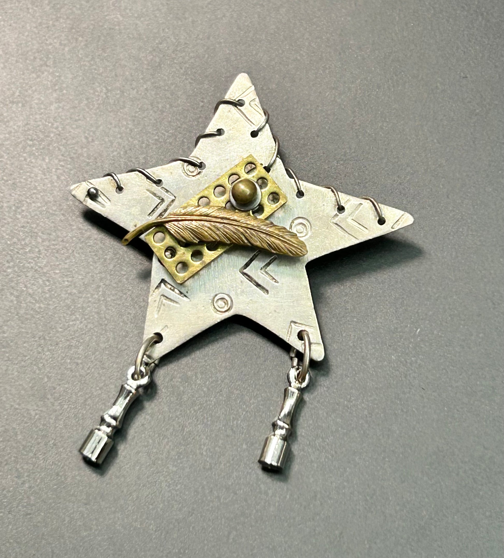 Sterling silver Star brooch with brass and silver tone accents