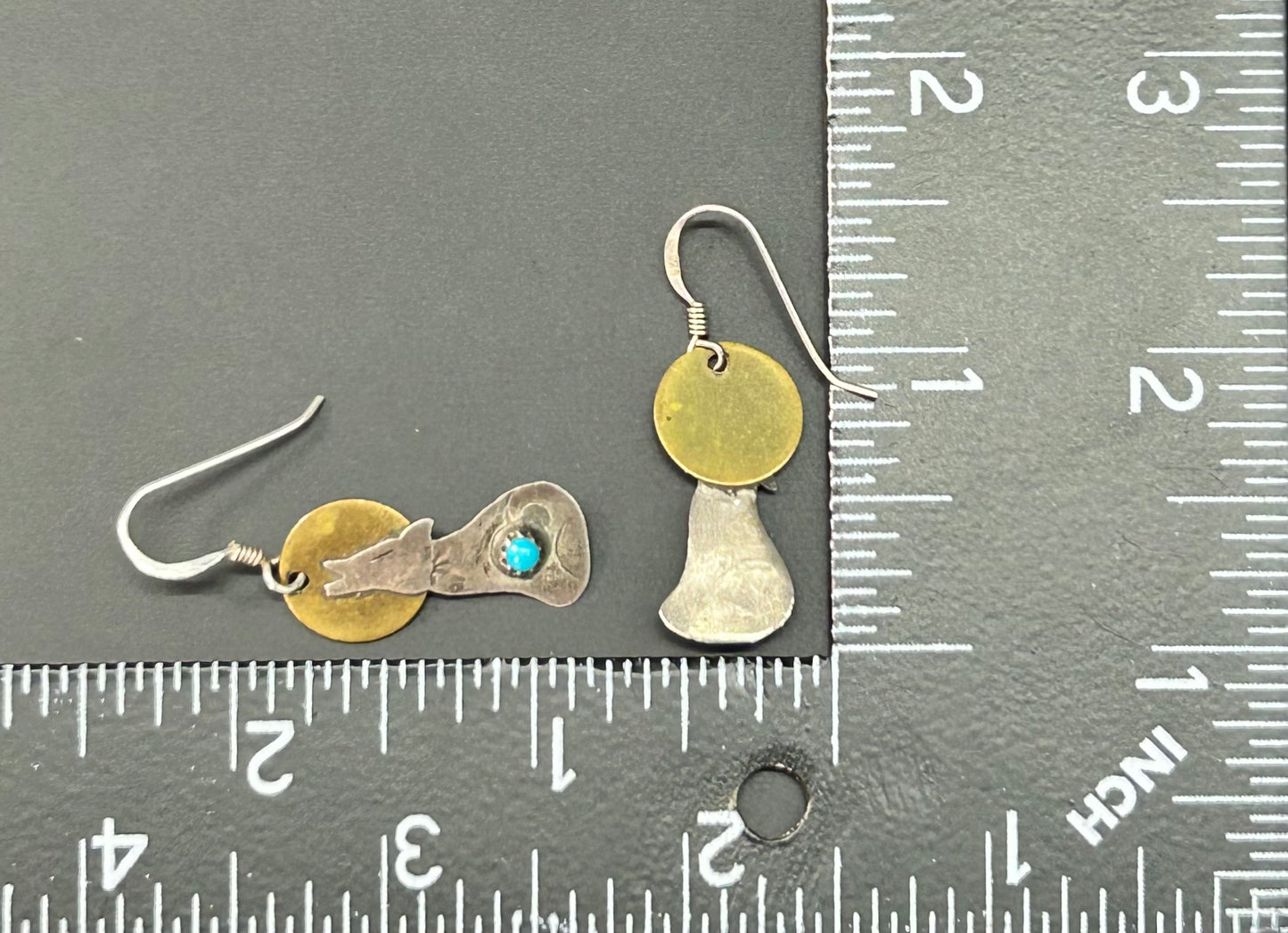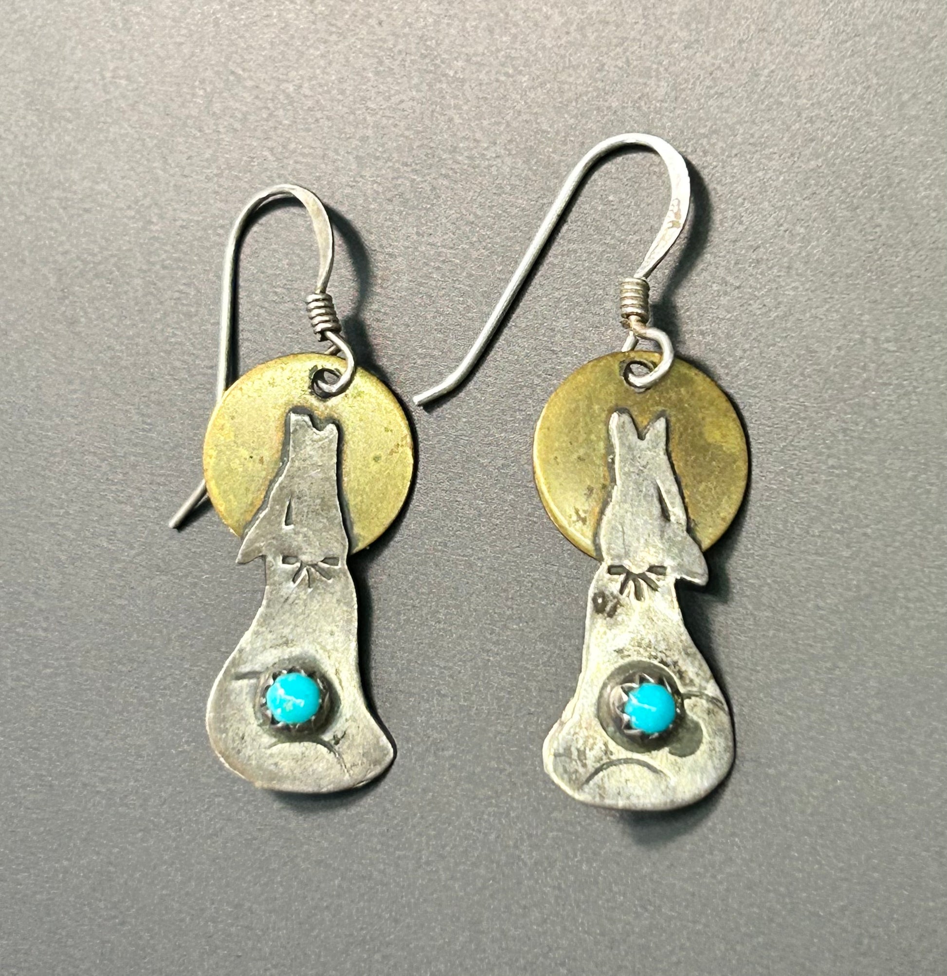 Sterling silver and brass howling coyote earrings
