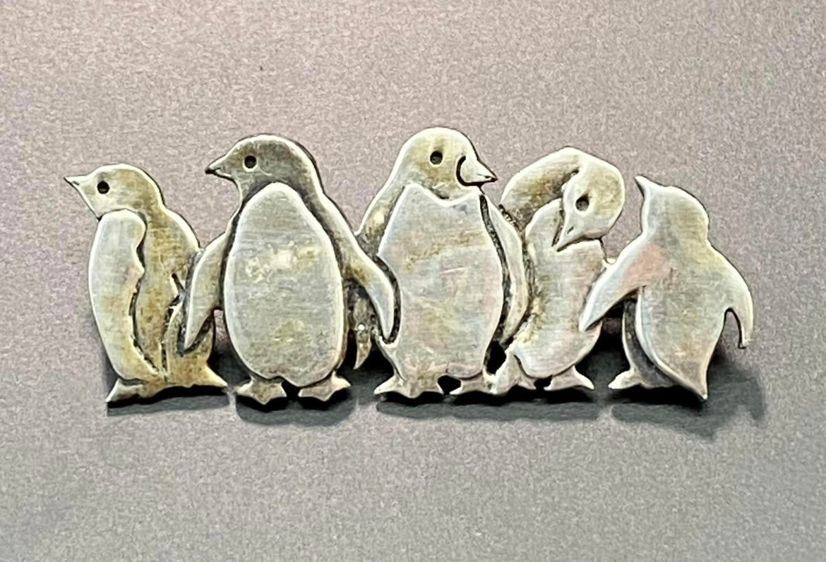 Sterling silver penguin brooch