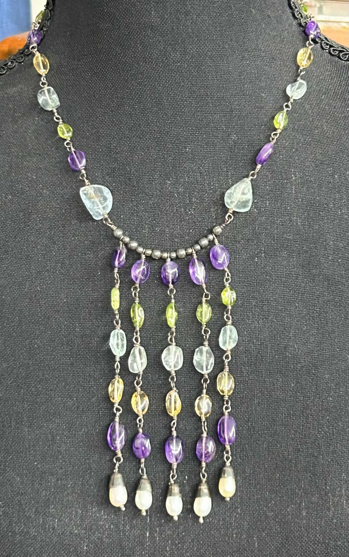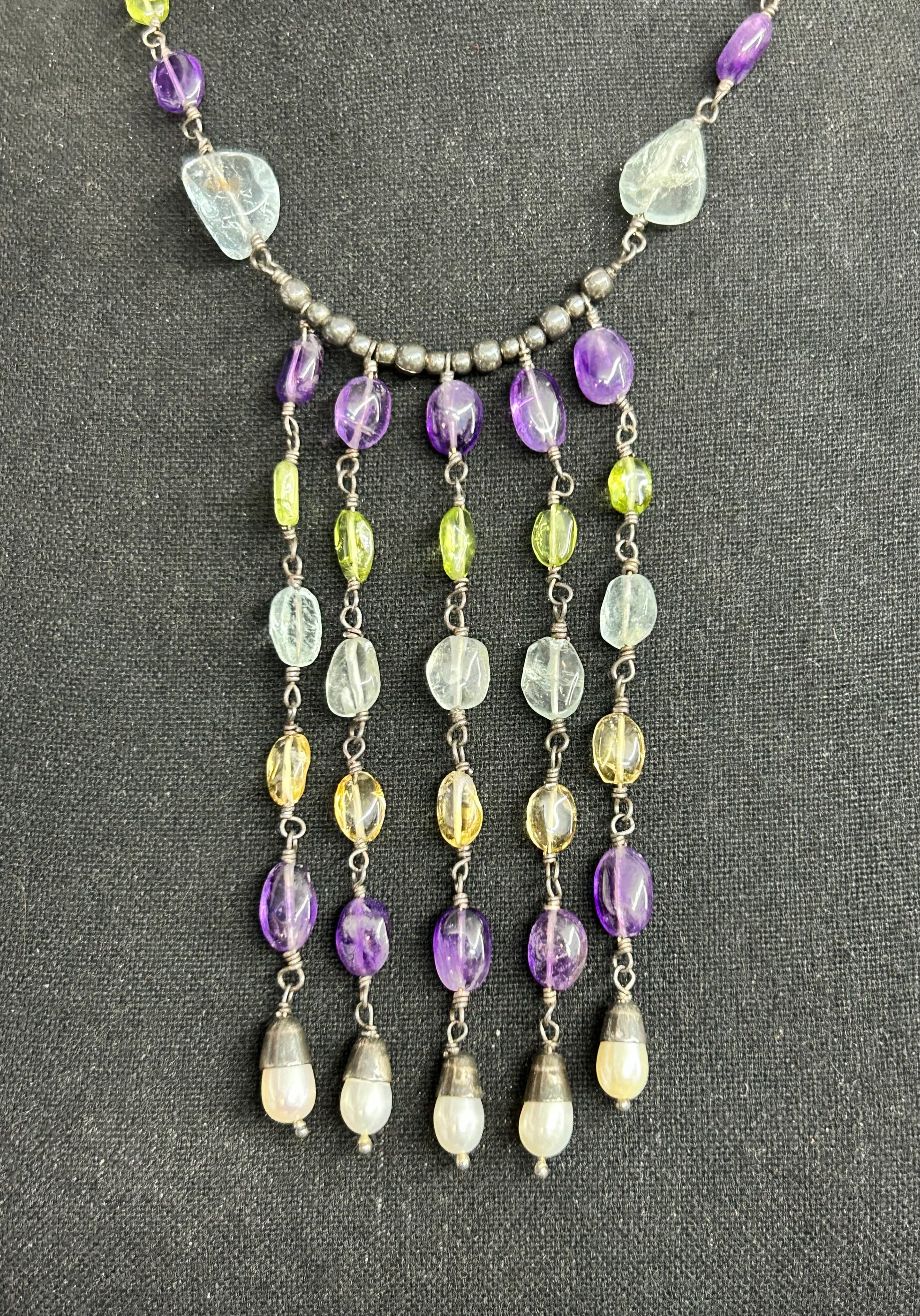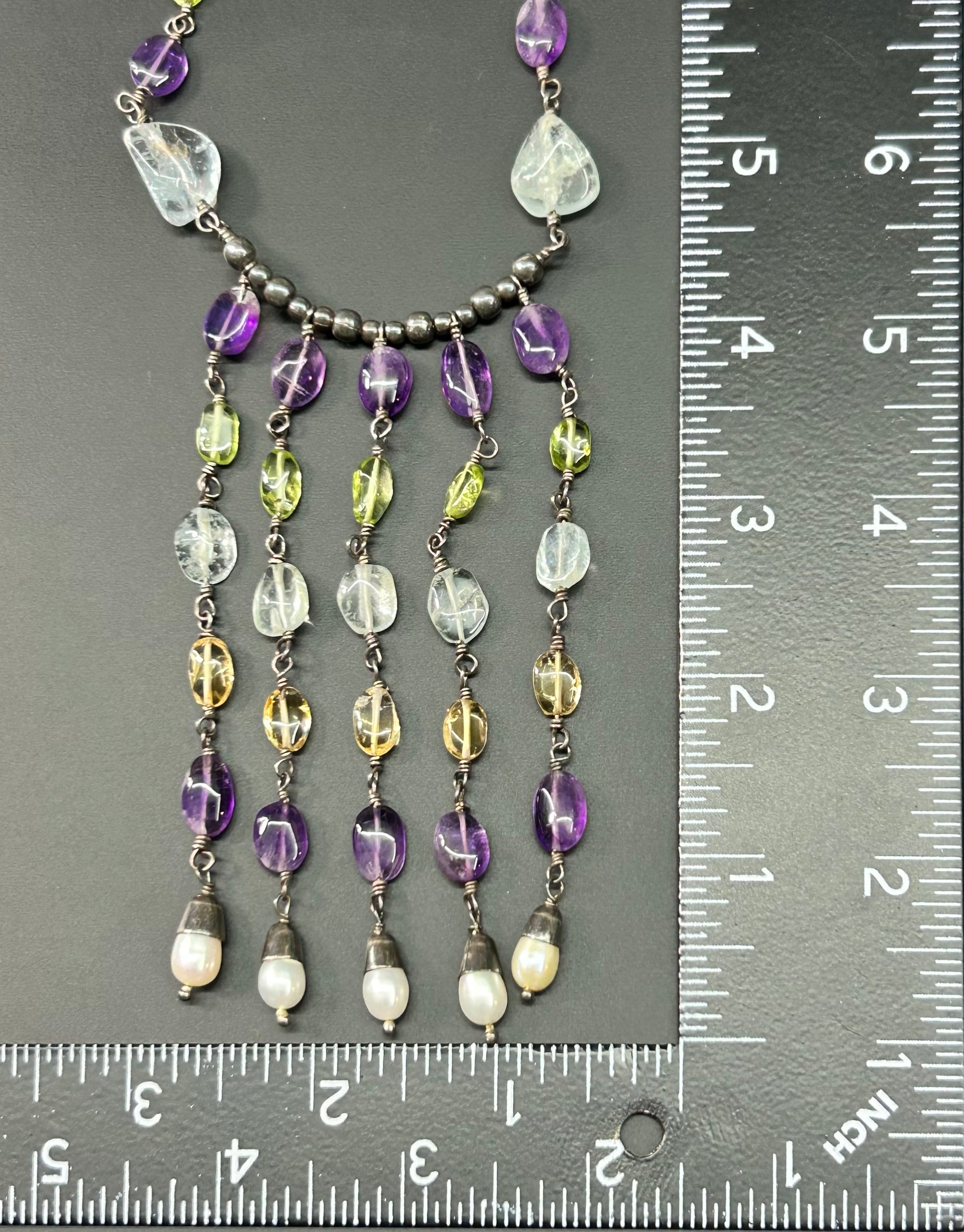 Sterling silver multi stone (amethyst, peridot, citrine, quartz, and pearl) necklace