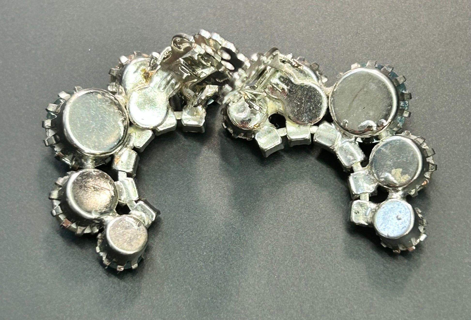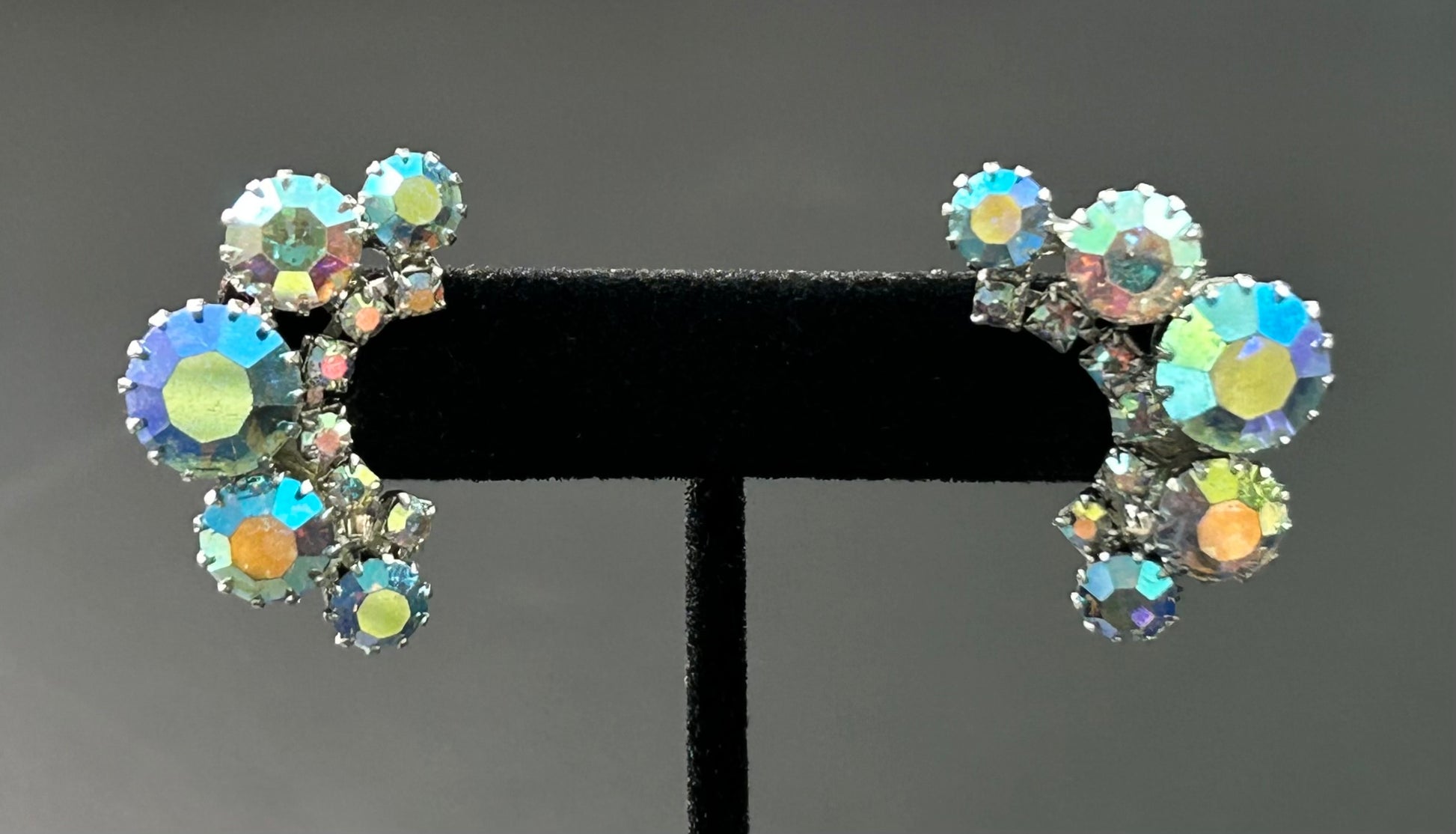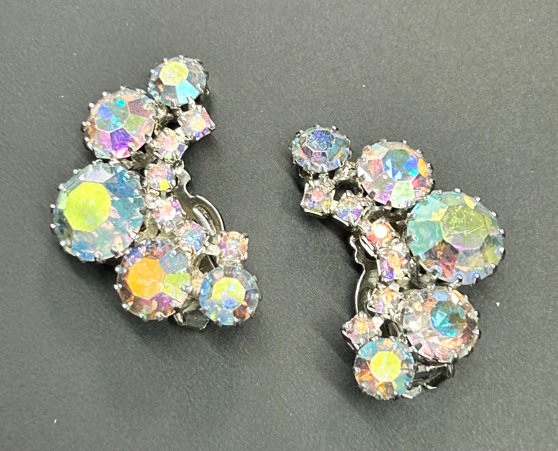 Unsigned Weiss AB rhinestone clip on earrings