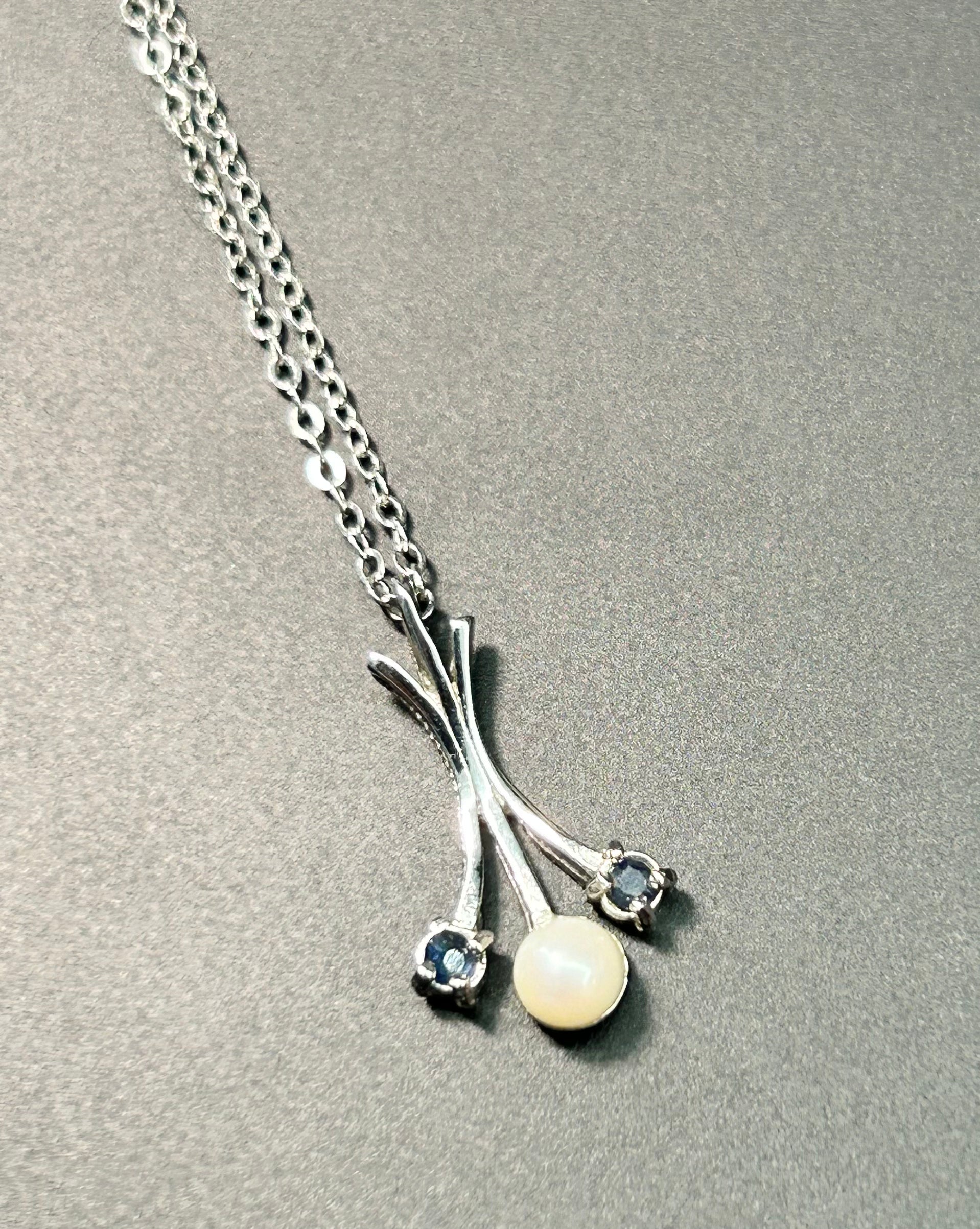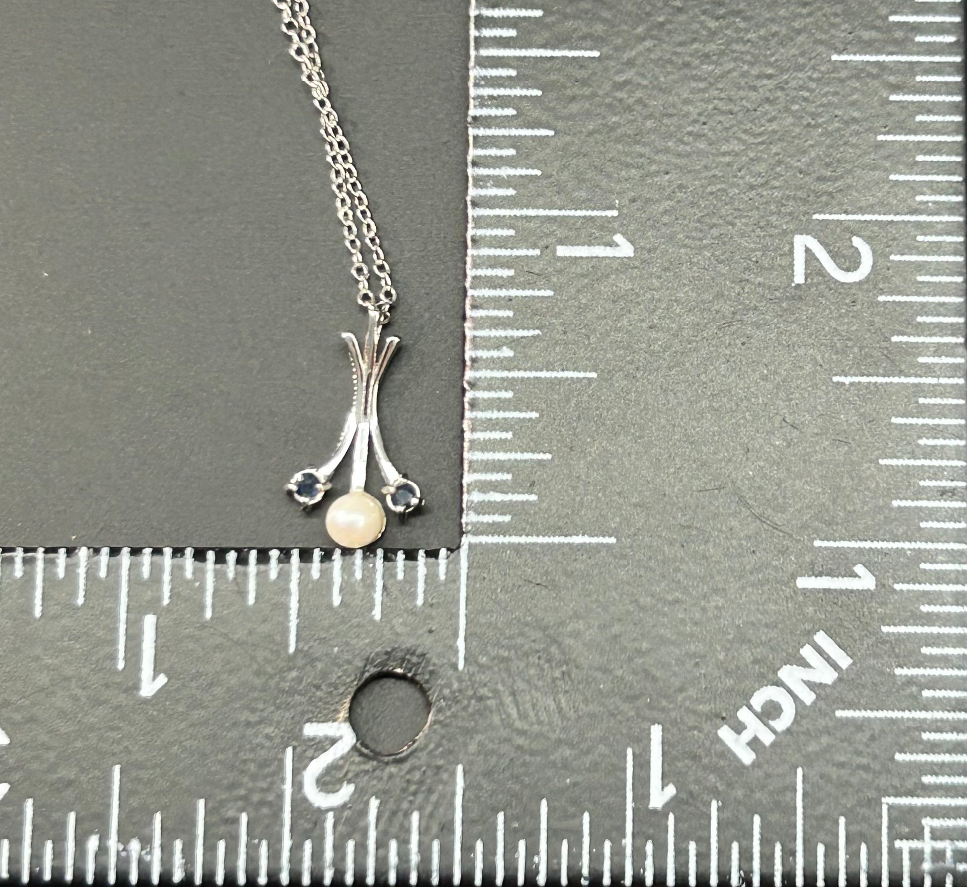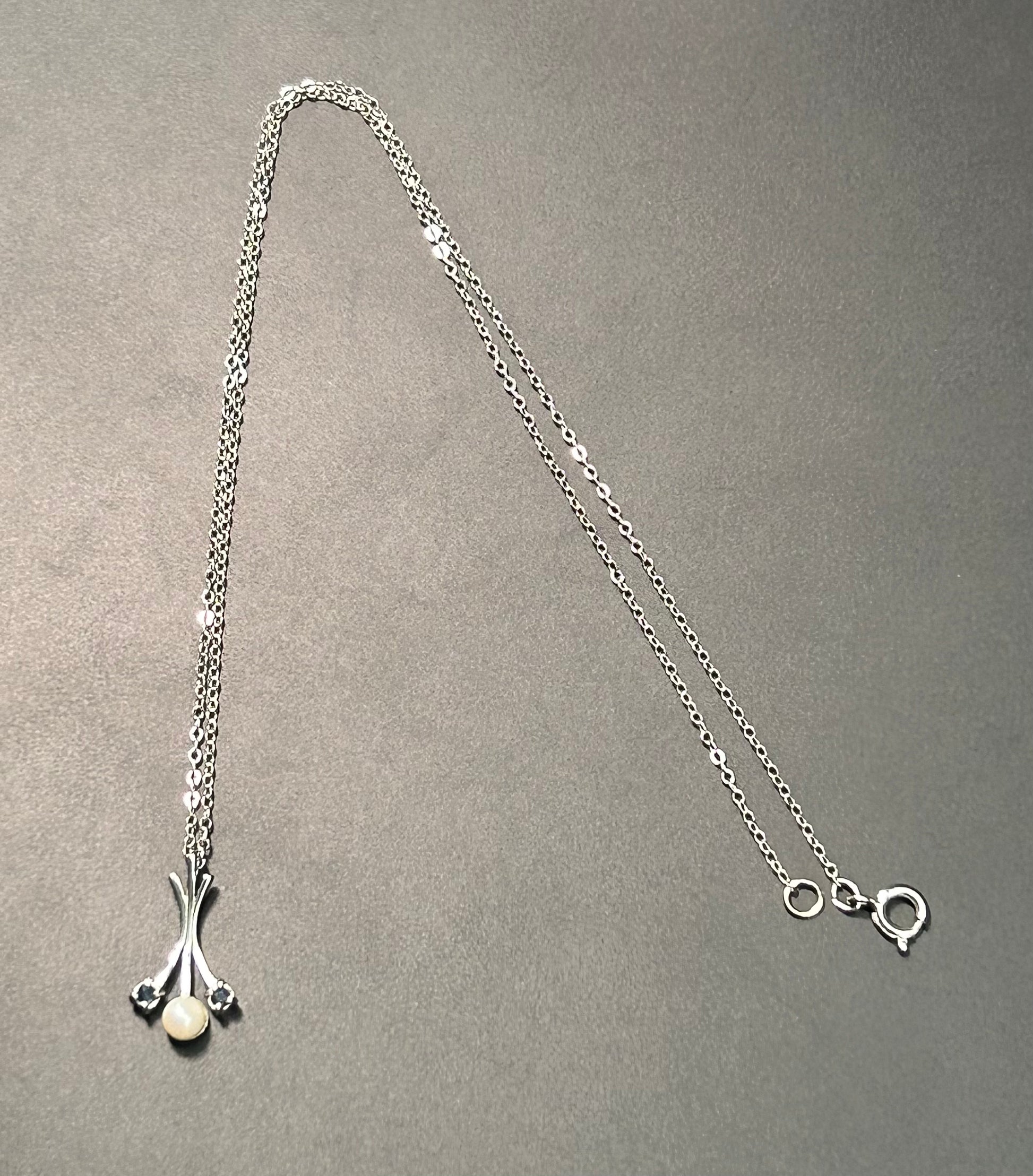 Vintage sterling silver pearl and rhinestone dainty pendant necklace