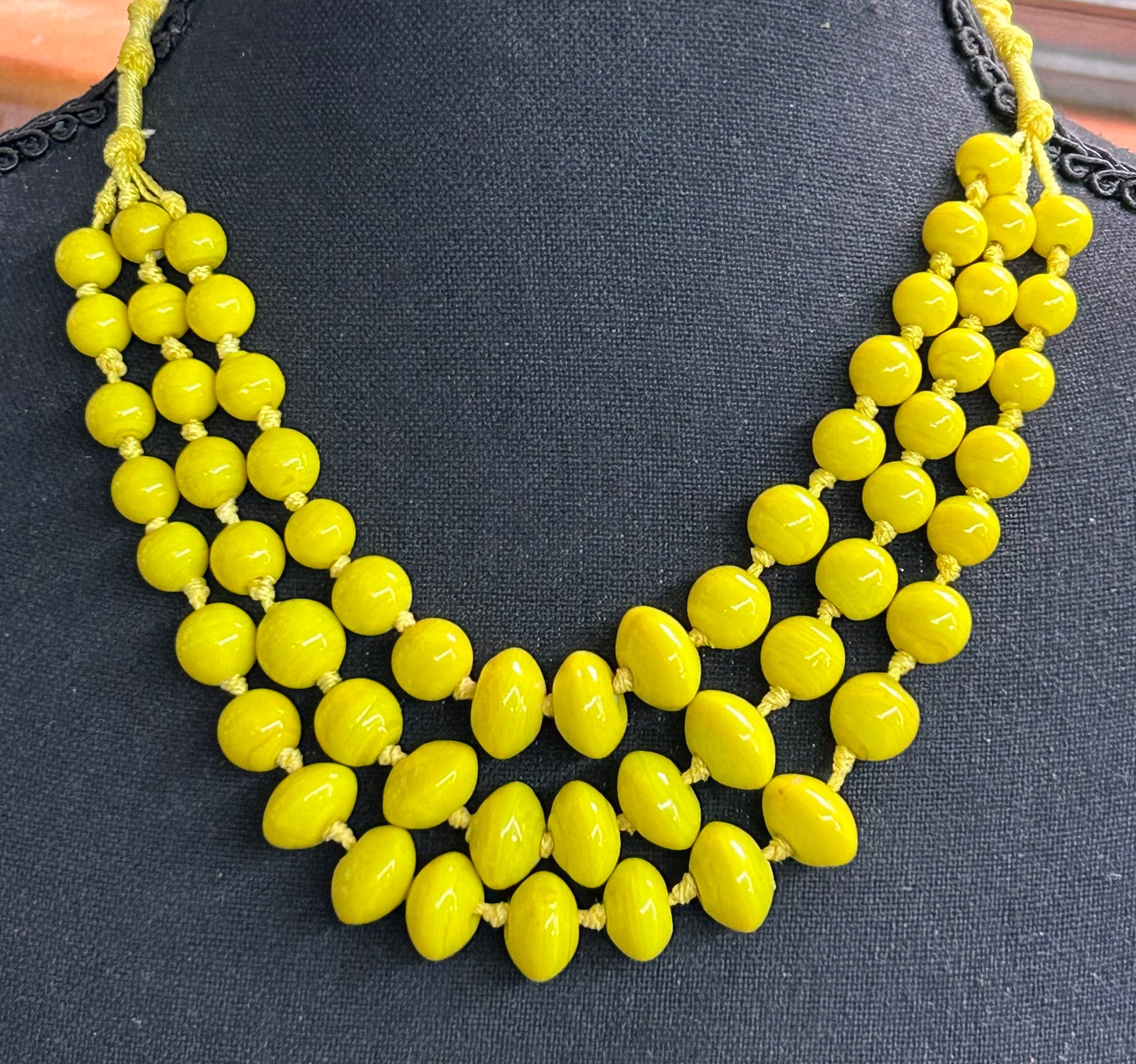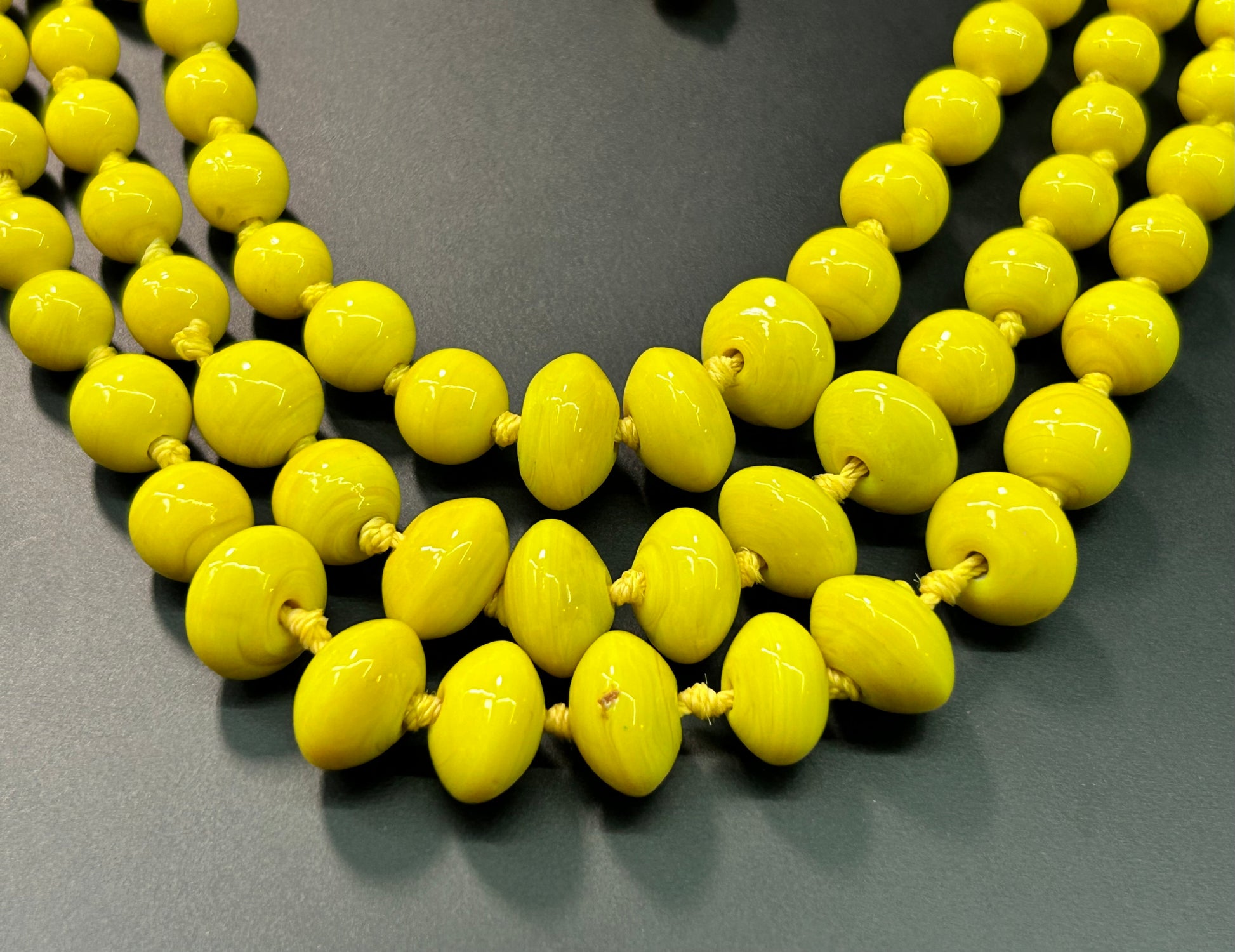 Vintage knotted yellow glass layered necklace
