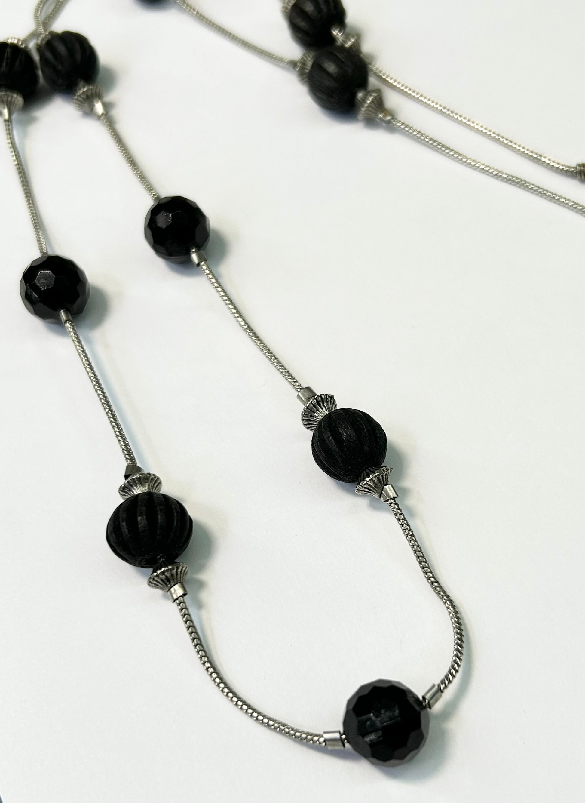 Silver tone wood and acrylic bead necklace